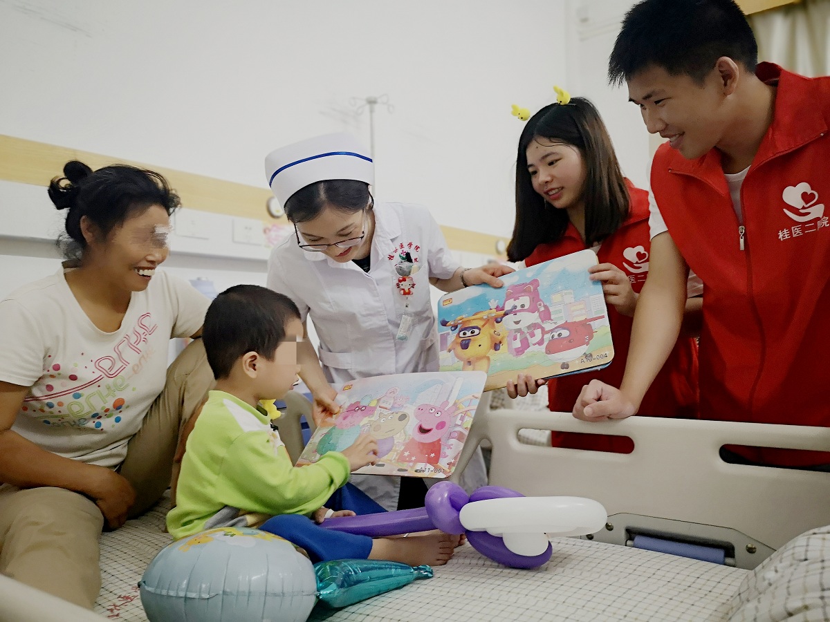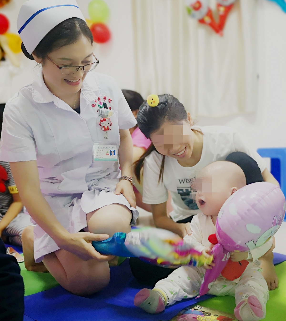 当天下午,儿科示教室里就被医务人员和医务社工们装扮一新,墙壁上挂满了彩色的气球和风车。在充满多彩的房间里,在医务社工和儿科的医务人员的指导下,正在住院的数十名患儿和家长们通过亲子互动共同完成了一个个别致的气球造型,让孩子们在医院感受到了节日的快乐,更感受到了医院真挚的关爱和满满的祝福。“我们的第一个儿童节就在这里过了,特别温馨。”9个月的患儿家属黄女士说到。