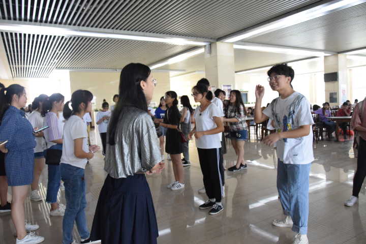 阳光正好,花香正浓。活动一开始,同学们随机分桌围在一起,亲手实践,每桌的同学别出心裁地包着饺子,同时,大家也绕着各种不同的话题热烈地交谈着,场面温馨,同学之间的感情也随之加深。经过同学们分工与合作,相互配合,饺子很快就包好了。静待饺子出炉的间隙,同学们和老师一起进行了小游戏,如:“心有灵犀”、“八人九足”活动,充分展示了同学们相互间的默契与配合;“动作练歌房”、“听歌识曲”将知识性与趣味性相结合,同学们参与的积极性即刻被调动起来,大家都很享受活动过程,玩得极为尽兴。在欢声笑语中,热气腾腾的饺子在大家的期待中被端上了餐桌,吃着自己包的香喷喷的饺子,大家感受到了集体的温暖与亲身实践的快乐。