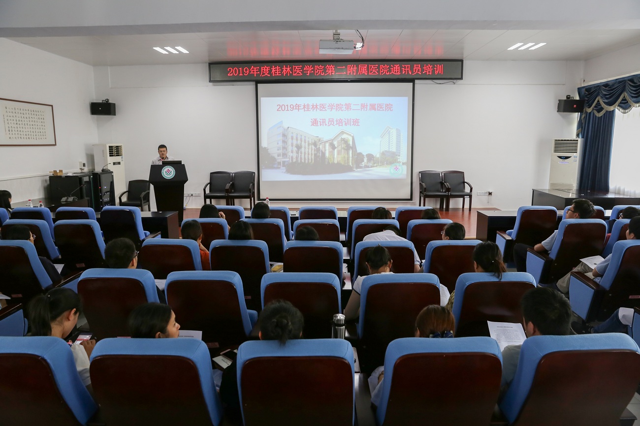 6月3日,由桂林医学院第二附属医院宣传科主办的2019年度通讯员培训会在九号楼2楼会议室举行。培训会由宣传科负责人周愉主持,医院各科室通讯员参加,党委副书记刘梦青在会上发表讲话。