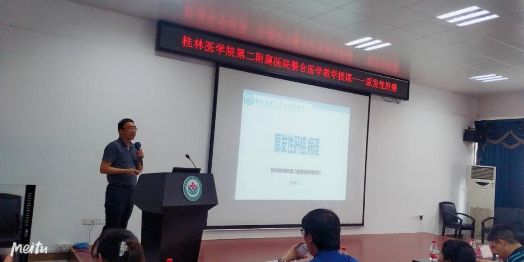 桂林医学院第二附属医院大内科、内科教研室于5月28日下午在9号楼2楼会议室开展题为“原发性肝癌”的整合医学模式授课。