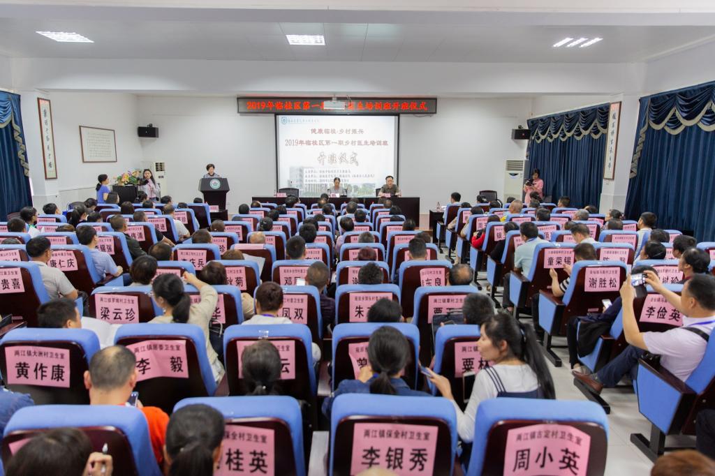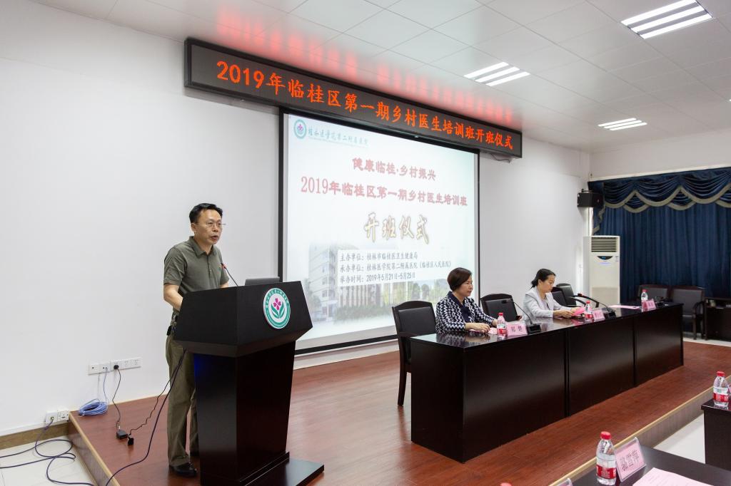 桂林医学院第二附属医院院长葛波、副院长郑楚,临桂区卫健局副局长曾小红及150多名临桂区各地区乡村医生参加开班仪式,仪式由郑楚主持。
