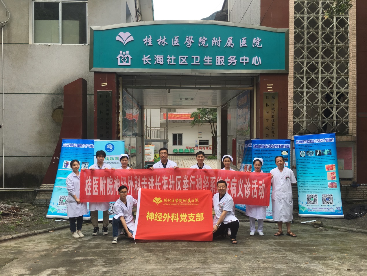 6月13日,家住长海社区的很多居民心情很爽。原来,当天桂林医学院附属医院神经外科党支部专家来给他们开展义诊活动了。