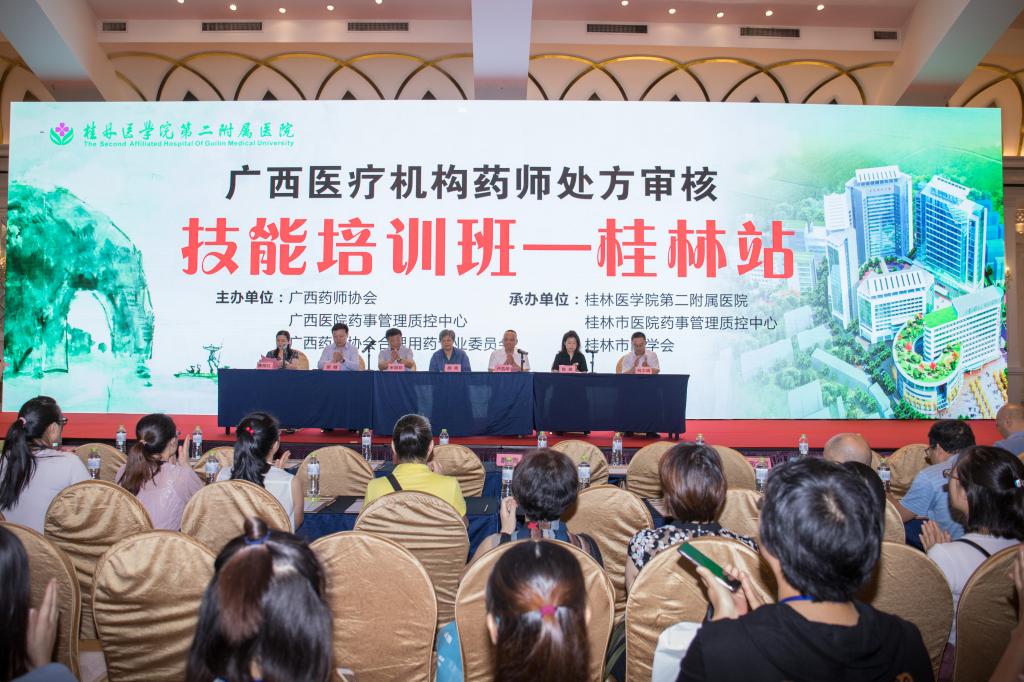 2019年6月15日,由广西药师协会、广西医院药事管理质控中心、广西药师协会合理用药专业委员会主办,桂林医学院第二附属医院、桂林市医院药事管理质控中心、桂林市医学会承办的广西医疗机构药师处方审核技能培训班(桂林站)成功举办。桂林医学院第二附属医院党委书记宋剑非、桂林市卫健委副主任卢浩华、广西药师协会会长陈英等出席会议。来自广西省内各级医疗机构的700多名药学医务人员参加了本次培训。