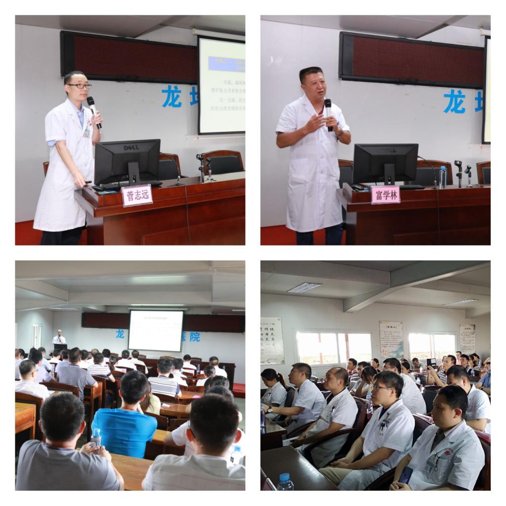 启动仪式结束后,附属医院胃肠外科主任菅志远、急诊科主任富学林分别以《循证医学和精准医疗的启示》、《急诊临床思维》为题为龙圩区各医疗机构相关负责人和医务人员进行讲座培训。
