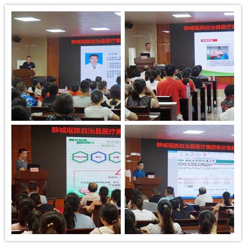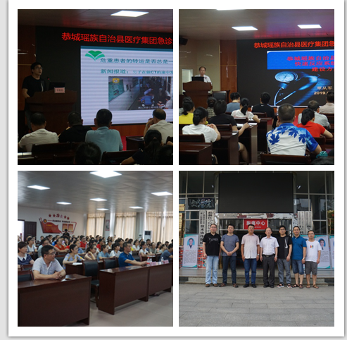 6月21日下午,应附属医院紧密型医联体单位恭城瑶族自治县人民医院(恭城分院)邀请,附属医院急诊与重症专家团队,对该院进行急诊急救相关知识与技能的培训。此次培训在该院学术报告厅举行,全院临床医生及急诊科、重症科、麻醉科护理人员共一百余人参加。