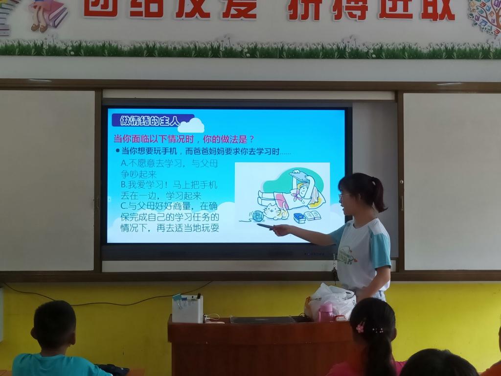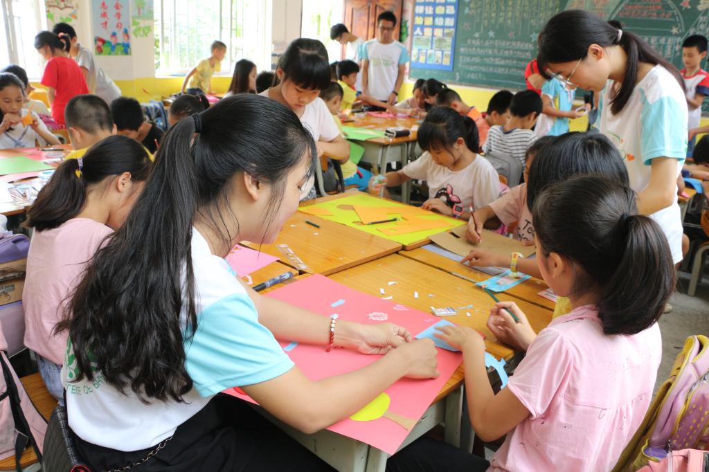 7月4日,志愿者们来到两江镇中心小学开展了内容丰富的主题教育活动,包括科学实验小知识普及、手工制作课、心理健康知识宣讲及心理健康运动会等。志愿者积极主动与孩子们互动交流,孩子们认真学习相关知识,一起用巧手创造性地完成剪贴画。团辅活动上,他们齐心协力完成运动项目,脸上常常绽放出灿烂的笑容。志愿者以学业辅导、素质拓展的形式促进孩子们的健康发展。
