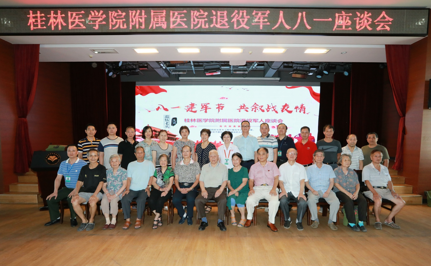 在“八一”建军节之际,为倾听退役军人对医院建设和发展的心声,表达医院党委对他们退役不褪志、退伍不褪色精神的关怀和崇高的敬意,7月31日下午,附属医院召开退役军人“八一”慰问座谈会。医院党委书记文琼仙、党委副书记蒋尧传,保卫科负责人以及全院28位退役军人参加了座谈会。