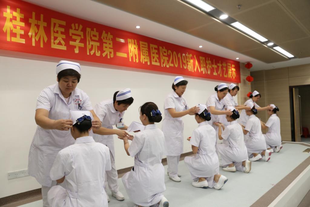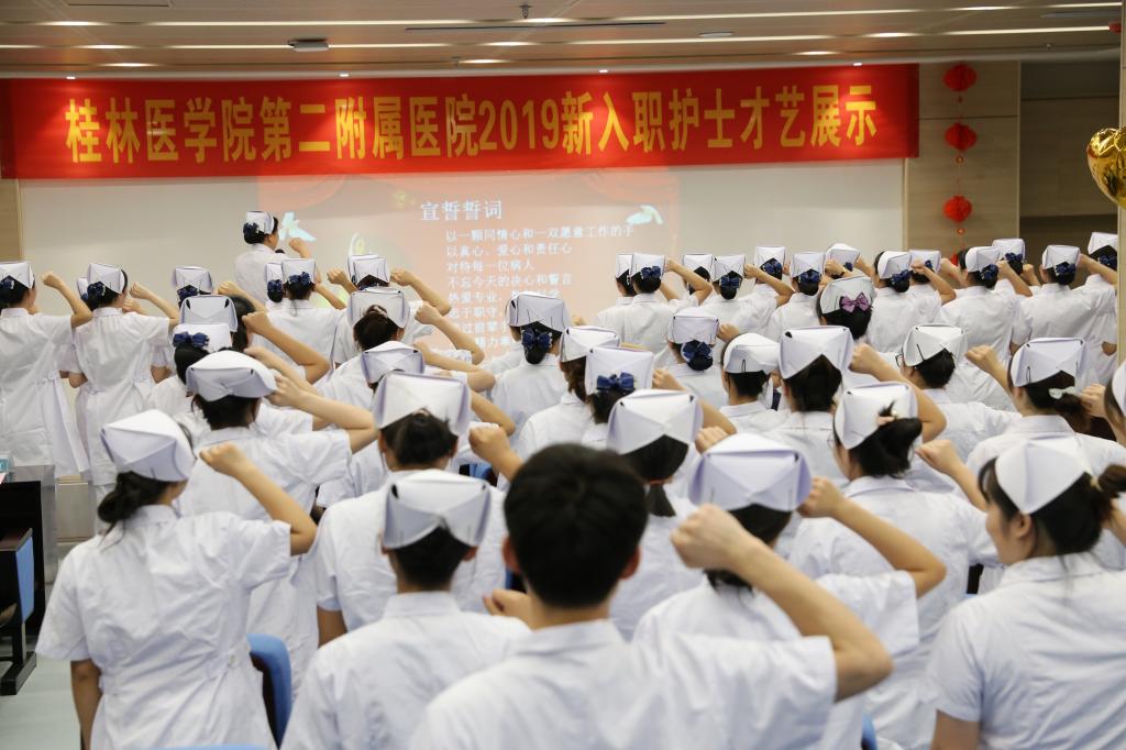 为激励新护士继承和发扬南丁格尔“燃烧自己,照亮别人”的精神,营造尊重护理、热爱护理的医院文化氛围,恰逢建军92周年。2019年8月1日,桂林医学院第二附属医院护理部举办了新入职护士才艺展示暨授帽仪式。副院长夏中华、王海鹏及部分职能部门负责人、护理部、全体护士长、新入职护士与科室护士代表约150人参加了此次活动。