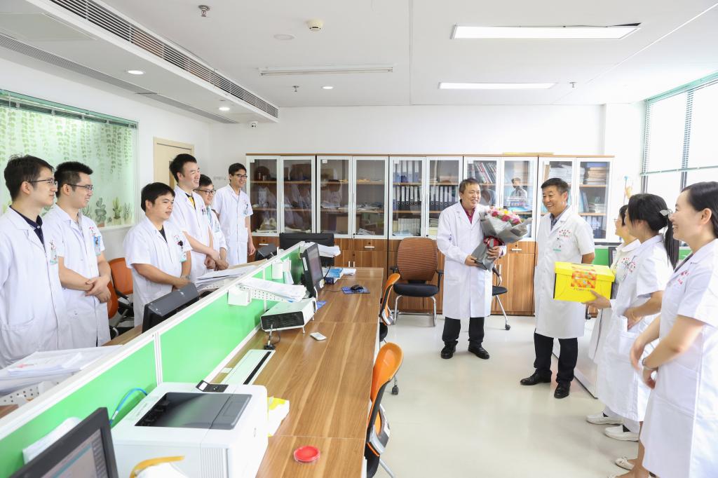 2019年8月19日,在新中国成立70周年之际,迎来了第二个“中国医师节”,为营造尊医重卫的良好氛围,医务部组织了慰问活动。第二附属医院党委书记宋剑非,党委副书记、院长葛波带领班子成员深入各临床科室看望慰问一线工作者,为医生们献上鲜花和蛋糕,送去节日的祝福和亲切的慰问。