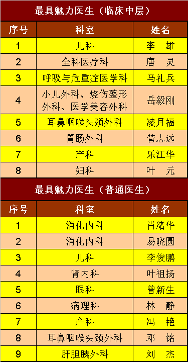 本届桂林医学院附属医院“最具魅力医生”近一周的投票,共推选出17名最具魅力医生(含平票),结果公布如下: