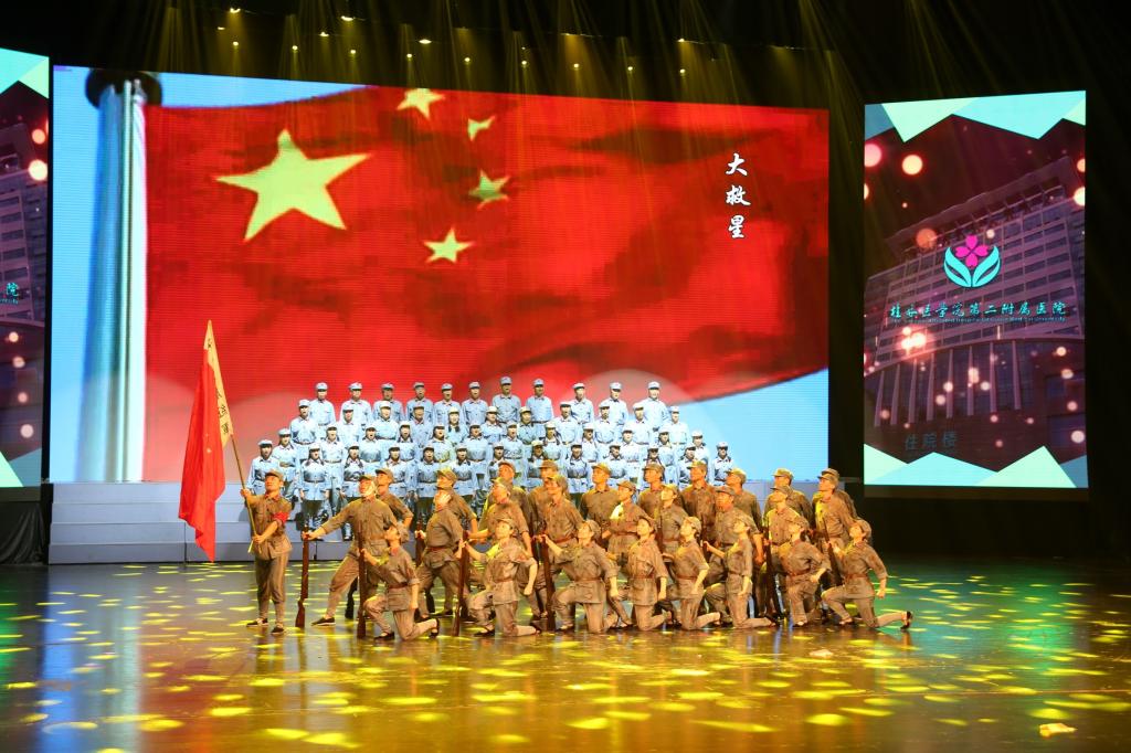其中,桂林医学院第二附属医院选送的配乐诗朗诵《血染的湘江格外红》以深刻丰富的主题和震撼的舞台感染力将现场气氛推上高潮,得到了现场观众的一致好评。