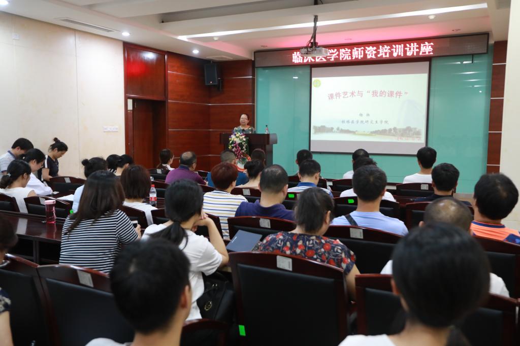 研究生学院副院长杨扬博士和附附属医院/临床医学院周晓坤副教授分别作了《课件艺术与“我的课件”》《教学课件制作体会》专题讲座。附属医院/临床医学院副院长梁志清、教学管理部负责人、各教研室副主任及教学秘书、临床教师参加了讲座。来自桂林市人民医院、桂林市第二人民医院及桂林市精神卫生中心等30余名院外教师也参加了此次培训。
