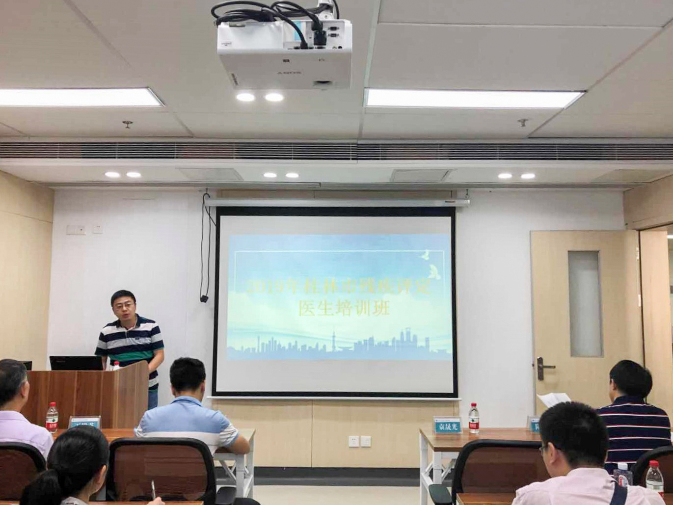 近日,我市举办全市残疾评定医生培训班,分别对智力、言语、精神、视力、听力、肢体及多重残疾评定进行培训。桂林医学院第二附属医院作为听力残疾培训承办机构,于8月28日举办培训班,对桂林市各个县近30名中级职称以上耳鼻咽喉科医师进行培训。