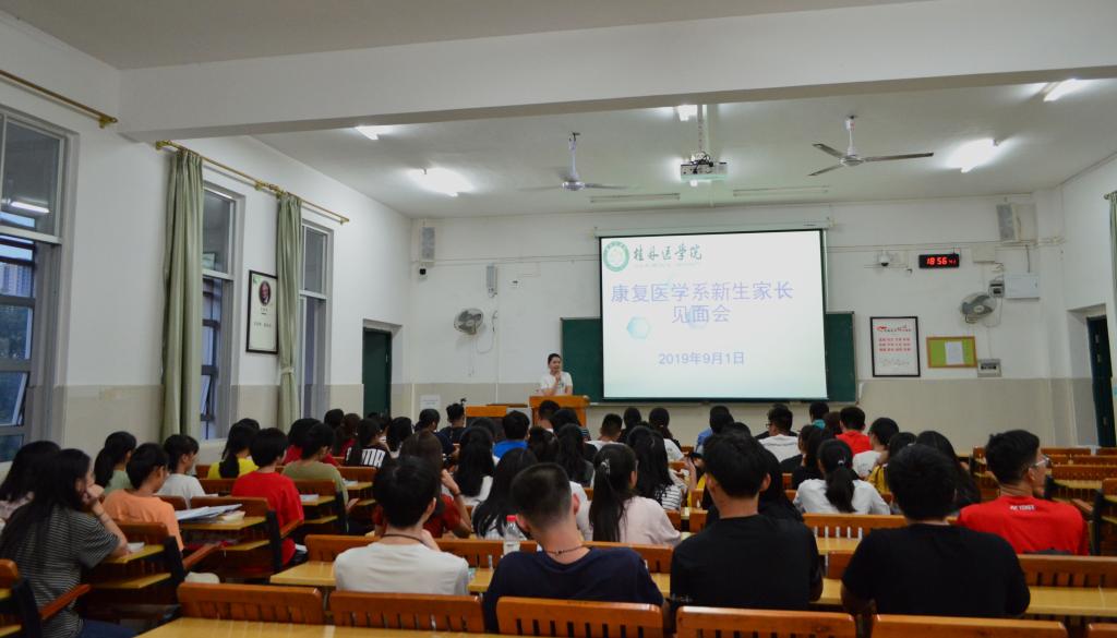 为增进康复医学系教师与新生及家长间的沟通交流,让新生和家长更好地了解学校和康复治疗学专业的基本情况,家校联动,引导新生更快地融入大学生活。9月1日晚,康复医学系在临桂校区教学南楼211教室举行2019级新生家长见面会暨导师见面会。康复医学系副主任孔繁荣、学工办主任高小玲、康复医学系教师彭丽媛、韩冬苗,新生家长代表及2019级康复治疗学本科班全体同学出席见面会。
