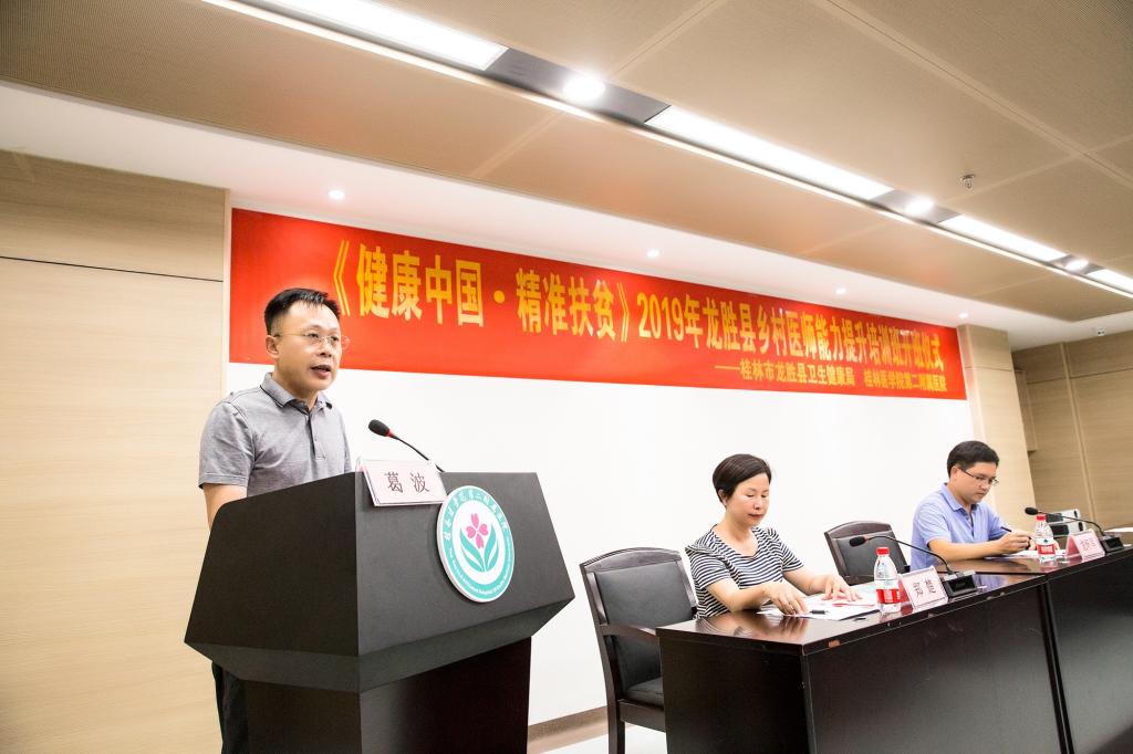 9月3日下午,由桂林医学院第二附属医院与龙胜各族自治县卫生健康局联合举办的“健康中国·精准扶贫”2019年龙胜县乡村医师能力提升培训班正式启动。