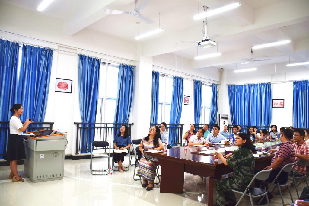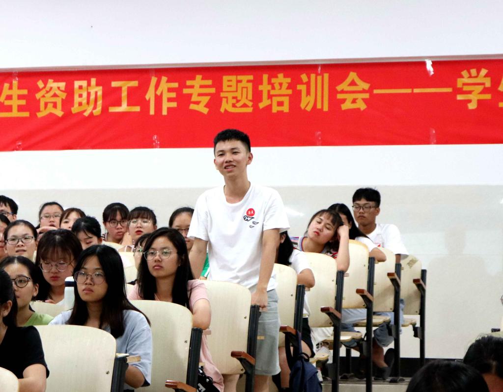 莫荣妹向全体参会师生介绍了我校学生资助政策体系,对家庭经济困难学生认定、各类奖助学金评定、国家助学贷款、勤工助学、应征入伍大学生学费资助、学校相关资助项目等工作规范、注意事项等进行了详细的讲解,并对本学期各项资助工作进行了具体部署。交流环节,学生资助管理中心老师解答了辅导员及学生干部在实际工作中遇到的问题和困惑。