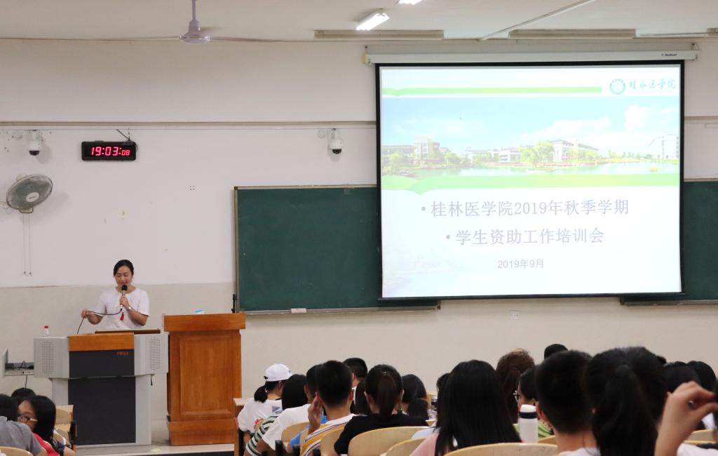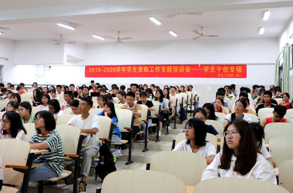 为全面贯彻落实党的十九大和全国教育大会文件精神,大力推进精准资助和资助育人,全力做好我校本专科学生资助工作,学生工作部(处)于9月10日上午和晚上在临桂校区顺利开展了2019年秋季学期学生资助工作辅导员专场培训会和学生干部专场培训会。学生工作部领导、各院系辅导员、学生资助管理中心全体老师,以及各班级负责学生资助工作的学生干部、各院系学工办学生助理、学生资助管理中心学生助理300余人参加了培训会。培训会由学生资助管理中心莫荣妹主持。