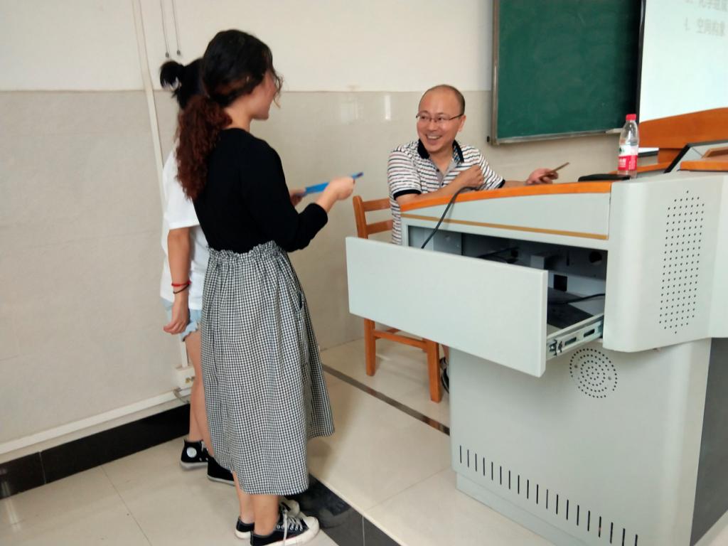 (学生代表向袁桂峰老师赠送教师节贺卡)