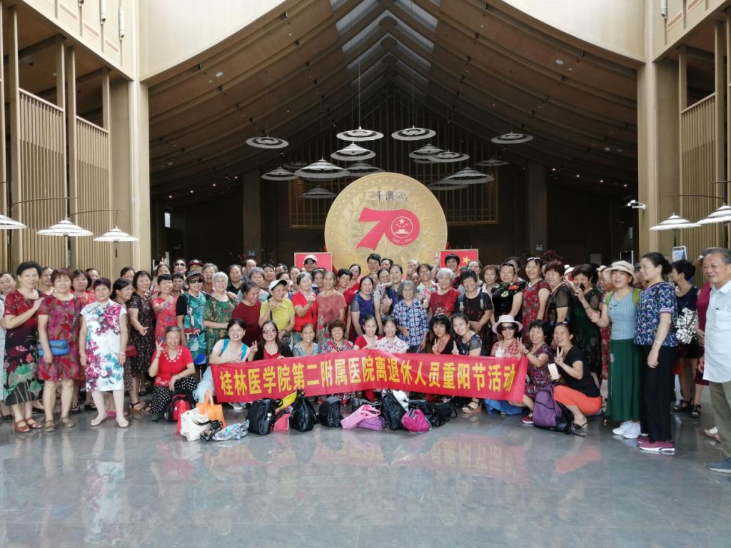 重阳节郊游游活动是桂林医学院第二附属医院离退休老同志工作中一项具有特殊意义的特色活动,为离退休老同志提供一个欢聚交流的机会,通过轻松愉快的游览达到贴近自然、愉悦身心、开扩视野、放松心情的目的,深受老同志们喜爱。每次开展活动,离退办都要认真选择地点,精心组织,周密策划,为确保老同志们的安全,医院选派了1名保健医生和2名保卫人员保驾护航,确保整体活动安全、顺利、圆满。这次活动的成功举办,为医院离退休职工营造了欢乐、祥和的节日氛围,让他们感受到了医院大家庭的温暖,展现了离退休职工健康快乐的生活状态和老有所乐的精神面貌,得到了离退休职工们的一致好评。