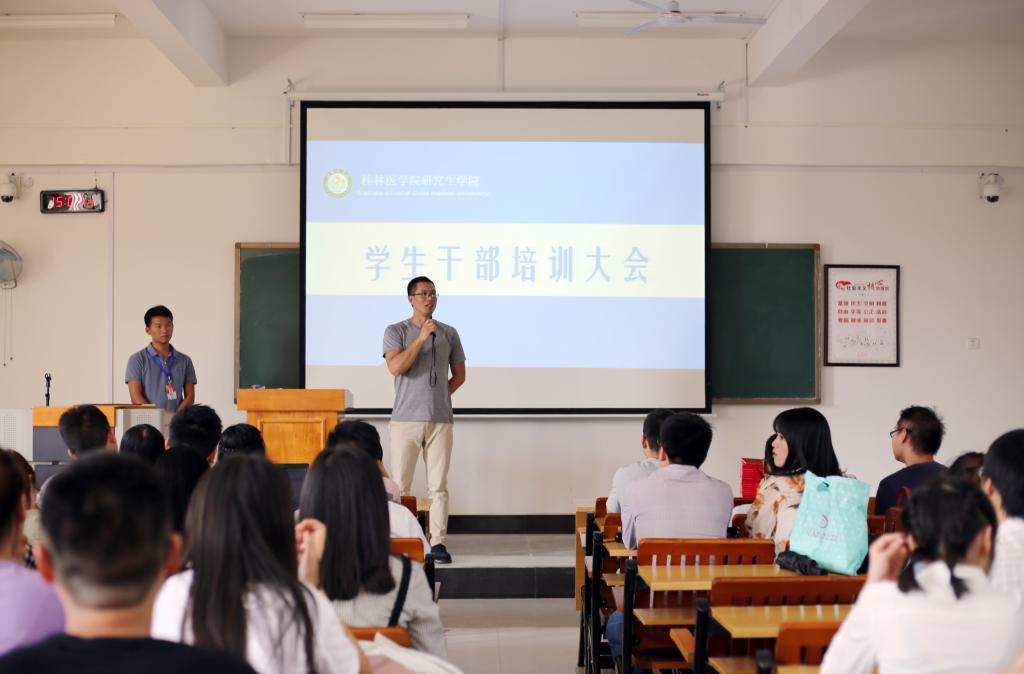 为进一步加强研究生社团组织建设,发挥研究生学生组织以文化人的桥梁纽带作用,9月24日下午,研究生社团干部培训在临桂校区教学楼N407举行,研究生工作部领导、老师、以及校研究生会、“医路随行”研究生志愿者协会、研究生宿舍自我管理委员会全体成员参加了大会,会议由校研究生会主席莫春宝主持。