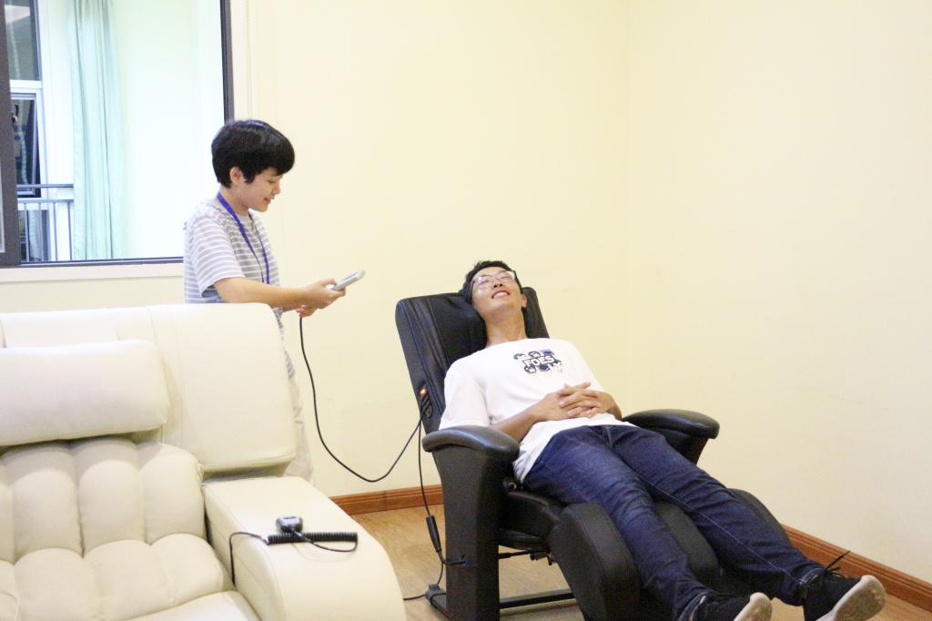 参观活动中,讲解员首先介绍了我校大学生心理健康教育与咨询中心的日常工作,介绍了中心的工作理念——无条件积极关注,见证生命的成长。阐明了中心服务的对象都是在学习、人际、恋爱、情绪、情感、就业等方面存在情绪困扰的广大同学,消除了学生对心理咨询的误解。随后,讲解员带领学生进入心理中心室内,详细的介绍了中心每间功能室和宿舍区的情绪宣泄室和素拓基地,并邀请学生先后体验了情绪宣泄室、艺术表达室、沙盘游戏室和音乐放松室的设备,同学们带着好奇心游览了每间功能室,兴致勃勃地体验了功能室的各种设备,欢声笑语充满整个中心。