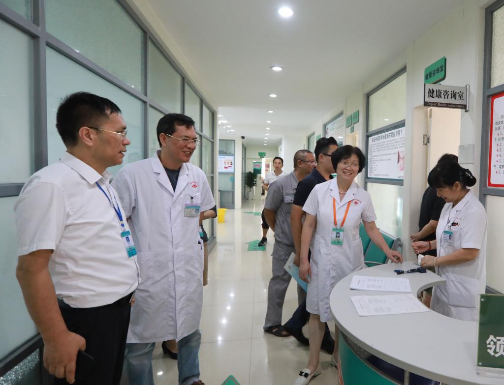 为了确保新中国成立70周年国庆期间的医疗工作正常运行,9月29日上午,附属医院领导文琼仙、李清华、马明霞、蒋尧传、梁志清、曾锦荣、庾俊雄、滕若冰带领各行政职能部门/科室人员分成四组在全院进行行政大查房。
