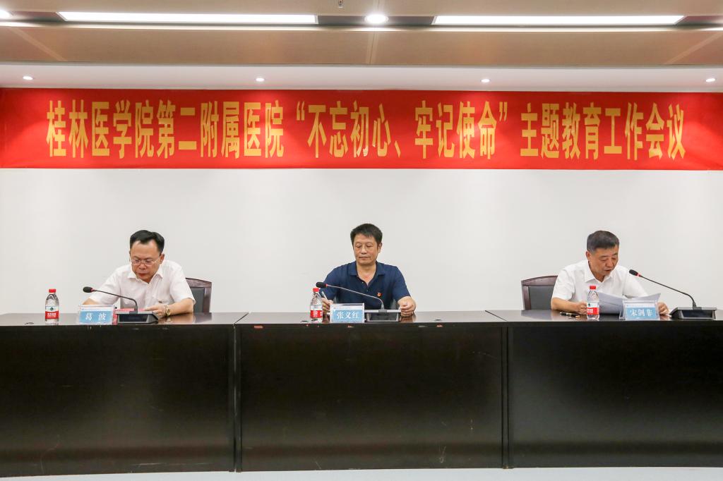 根据党中央和自治区党委统一部署,第二批主题教育于9月开始,11月底基本结束。这次主题教育不划阶段、不分环节,把学习教育、调查研究、检视问题、整改落实贯穿全过程。医院党委结合医院工作实际,认真研究制定了医院主题教育实施方案。主题教育工作会议的召开,标志着“不忘初心、牢记使命”主题教育在桂林医学院第二附属医院全面启动。