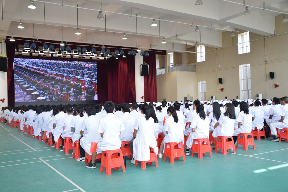10月1日上午,桂林医学院学生工作部组织学生在临桂校区易班学生工作站、党建文化中心、大学生活动中心四楼演艺厅观看祖国七十周年华诞盛大阅兵仪式直播视频。
