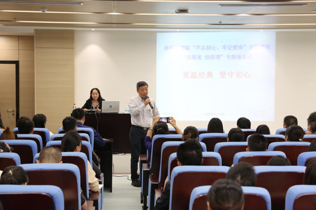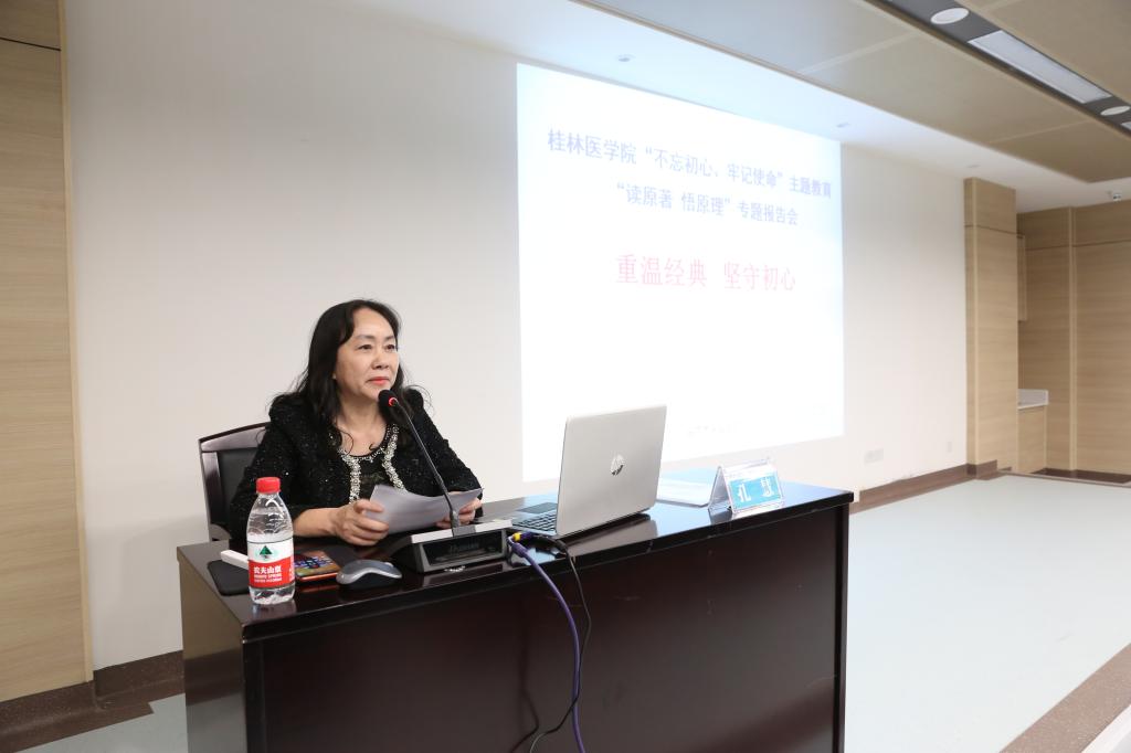 10月15日下午,桂林医学院“不忘初心、牢记使命”主题教育“学原著 悟原理”系列专题报告会在桂林医学院第二附属医院开讲。报告会由学校马克思主义学院副院长孔慧主讲,桂林医学院第二附属医院(临桂临床医学院、全科医学院)党员、学生等140余人参加。