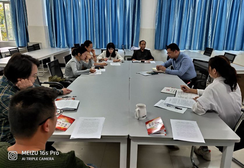 10月15日中午,为深入推进“不忘初心、牢记使命”主题教育,根据主题教育12字总要求,基础医学院实验教学中心党支部召开不忘初心、牢记使命”主题教育党日活动。支部书记吴丹主持会议,基础医学院副书记谭宁出席会议并为支部全体党员做了党课教育。