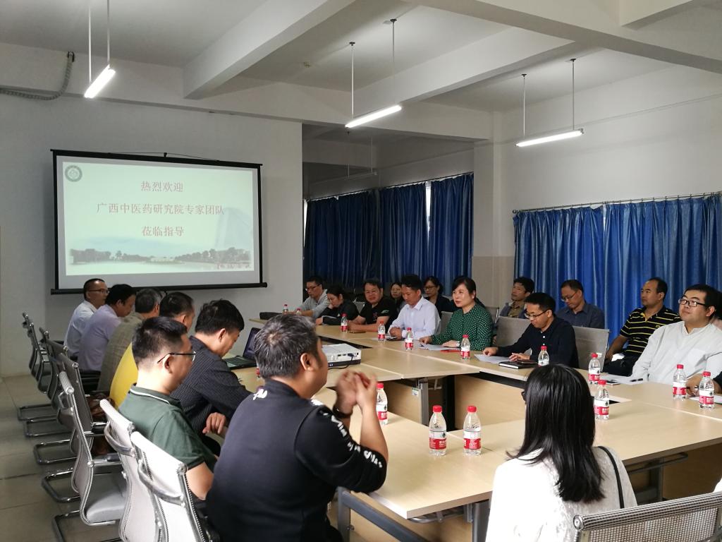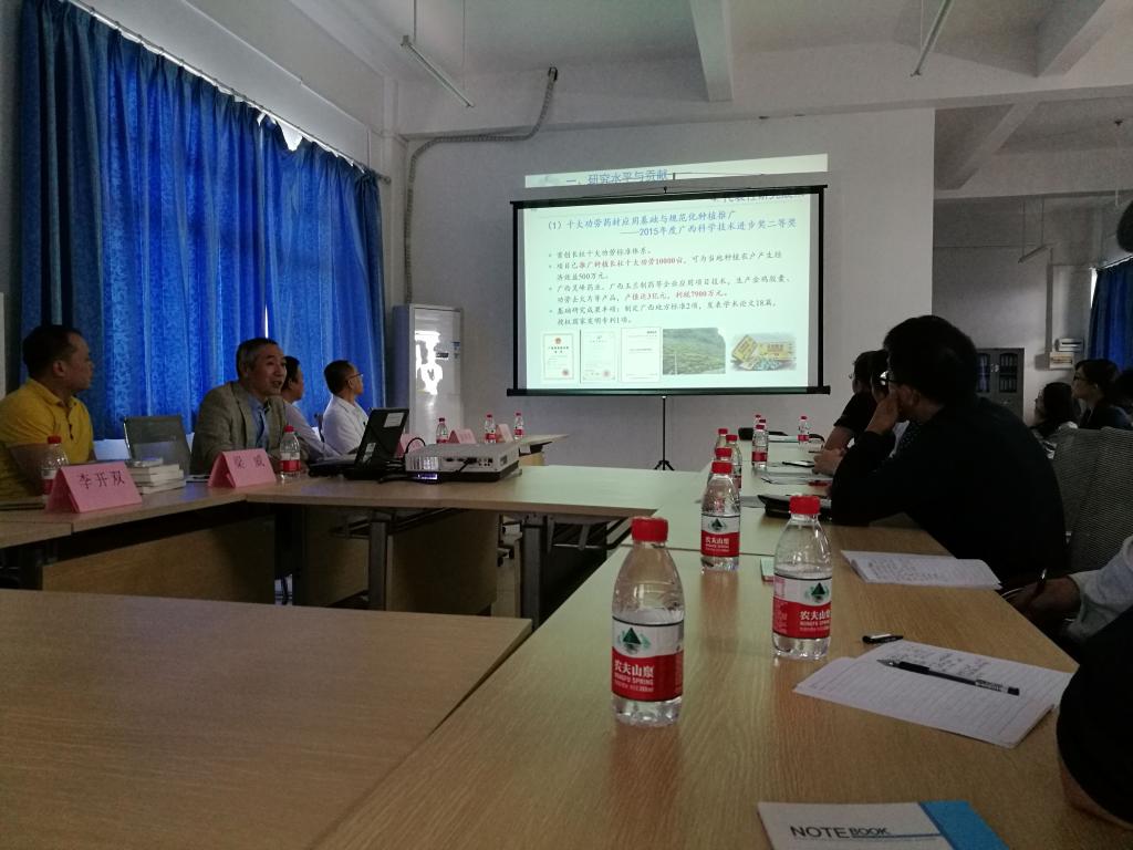刘布鸣主任主要介绍了广西中医药研究院和广西中药质量标准研究重点实验室在机构设置、人才队伍、科技成果转化、科技获奖和科学研究平台方面的情况,展示了该院在中药、壮瑶药资源开发和质量标准制定、成果转化方面的优势,并提出建立双方在科技项目申报与科技成果转化等方面合作的建议;药学院徐勤院长介绍药学院基本情况、药学院近几年在学科平台建设、人才引进、人才培养以及科学研究等方面取得的成绩,希望双方在重大科技项目申报、科技成果奖申报、实习基地建设等方面进行深入合作。