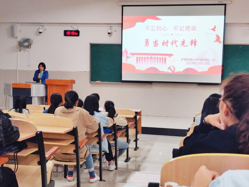 为更好学习贯彻校党委书记黄照权在给全校学生党员上 “不忘初心、牢记使命”主题教育专题党课上讲话精神,19护本一班10月18日于临桂校区S304召开学习班会,辅导员欧海燕主持班会。