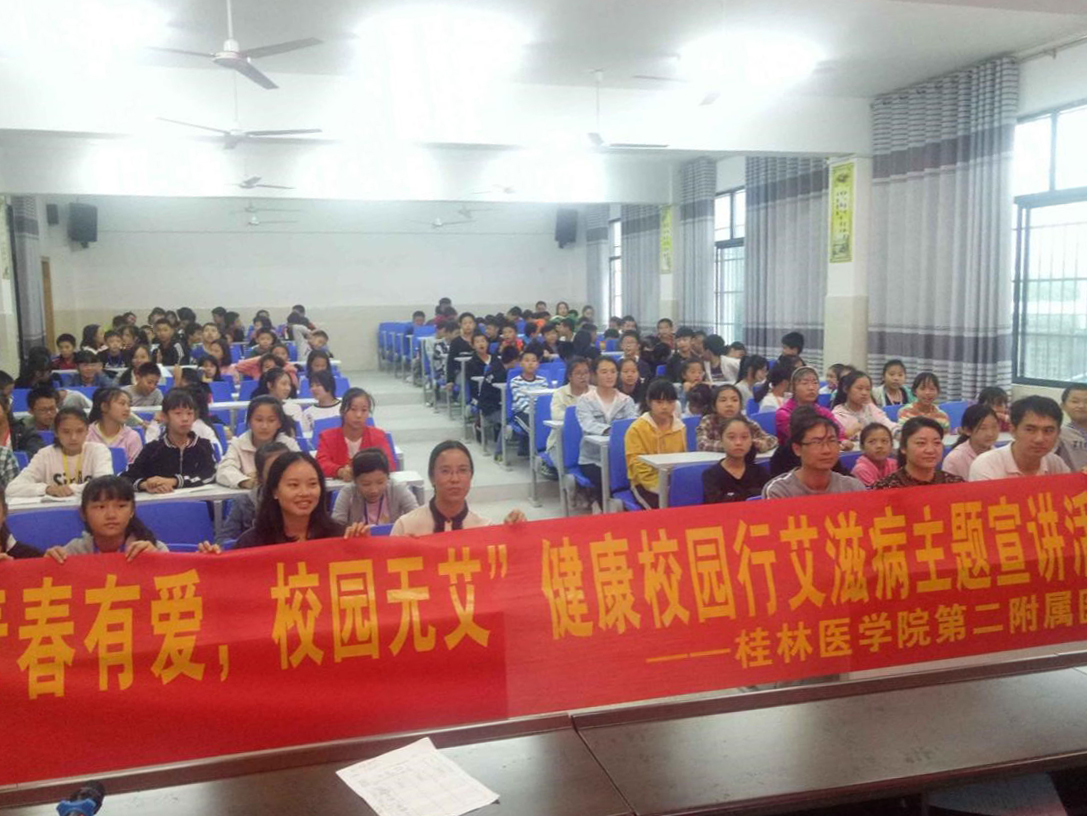 10月22日上午,凉风细雨,二附院预防保健科、团委及临桂疾控中心一行人来到临桂中庸中学,这是“青春有爱,校园无艾”健康校园行艾滋病主题宣讲活动的第二站,“作为临桂唯一的三级医院,我们有责任担当起防艾控艾宣教的使命。”预防保健科和团委负责人表示。