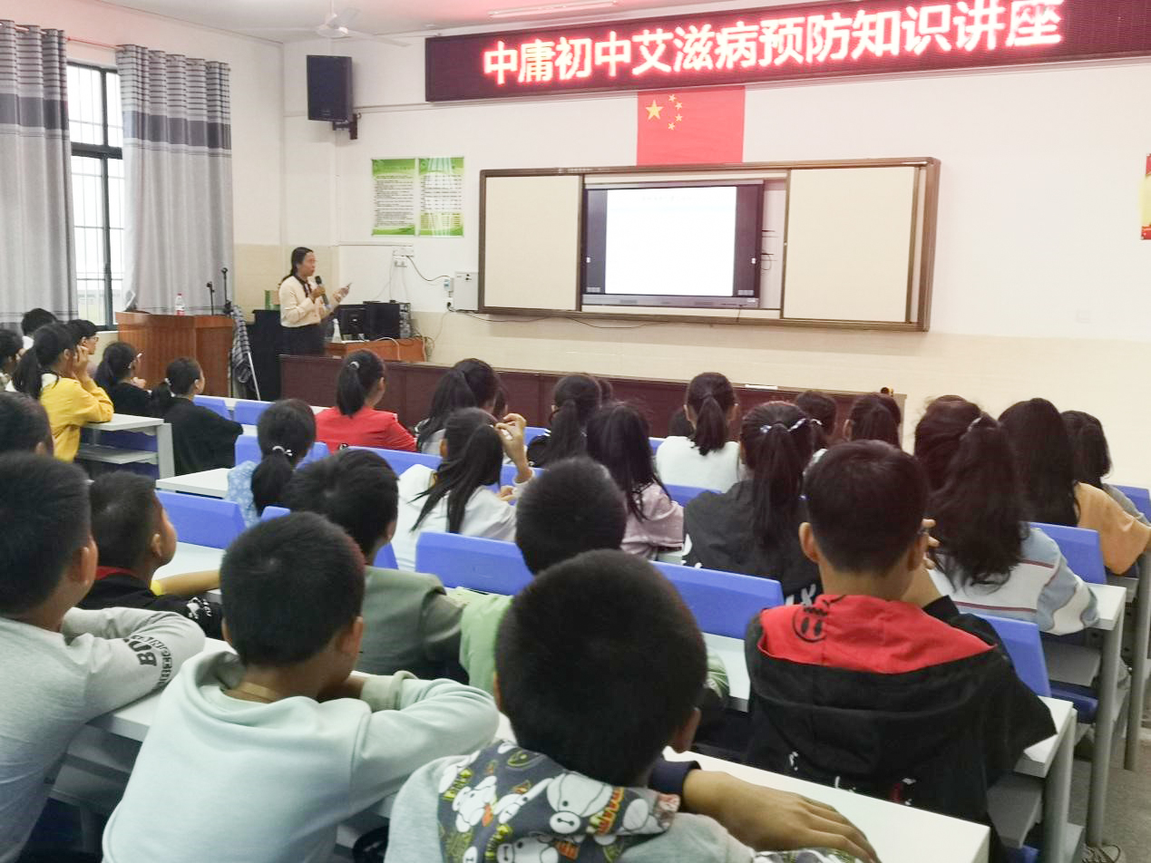 预防保健科主任陈春玲长期从事艾滋病的管理及宣教工作,十分了解临桂区艾滋病疫情分布情况,并为此积极参与到志愿活动中来。此次到中庸中学作主题宣讲活动,陈主任用通俗易懂的语言、形象生动的图片、以及令人震惊的数据,给在场180余名学生讲解艾滋病的概念、艾滋病的疫情以及作为中学生的防控措施等重要问题,同学们双手平放桌上,认真地聆听怕错过任何一个环节,活动结束后同学们用热烈的掌声表达了感谢,老师和同学纷纷表示这样的活动十分有意义,让他们在对待艾滋病时有了正确的观念。