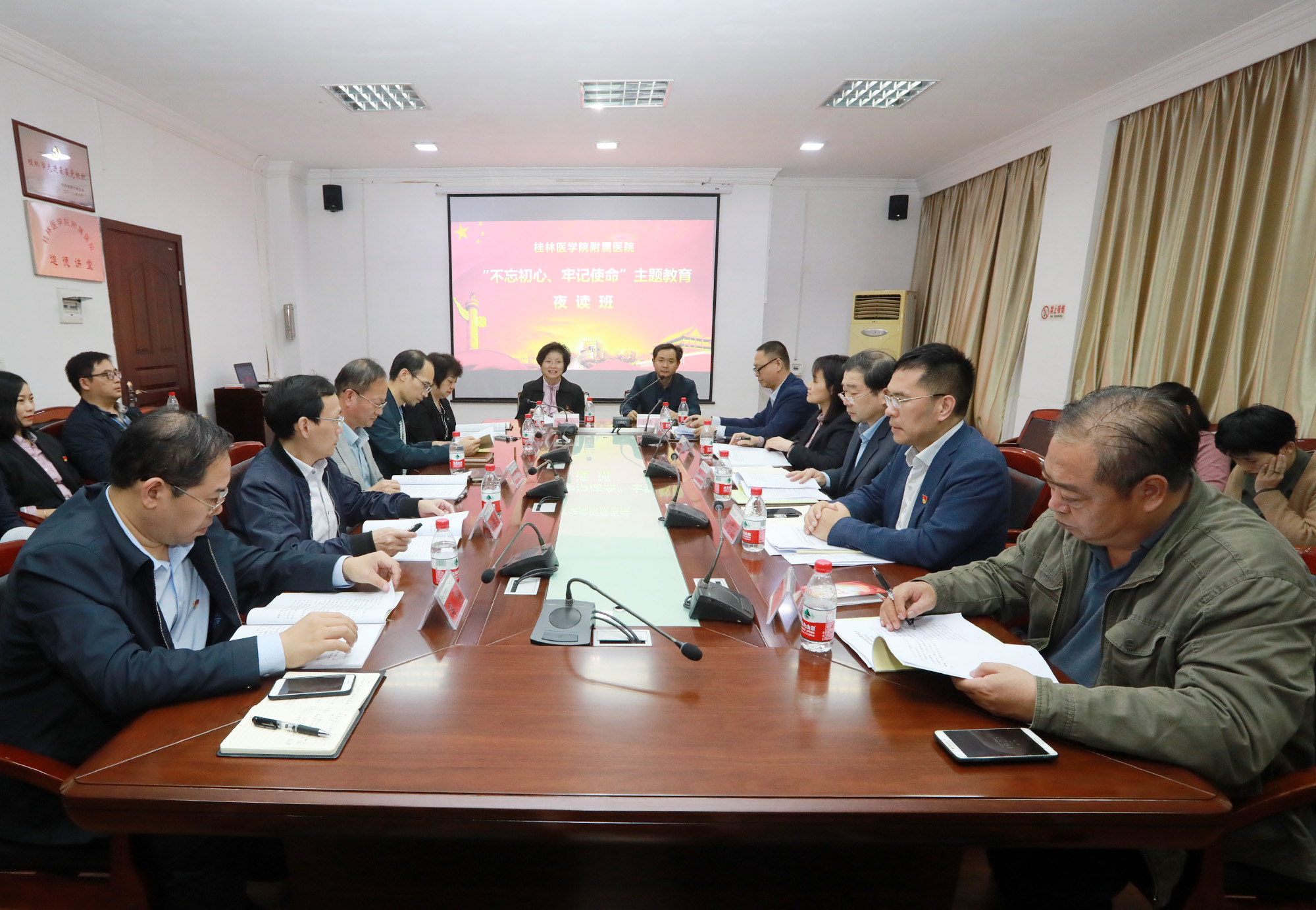 10月24日晚,附属医院(临床医学院)“不忘初心、牢记使命”主题教育夜读班第二场夜读活动在行政二楼会议室举行。医院全体党政领导、党委委员,各党总支书记以及党务职能部门正副职参加了此次学习。夜读活动由党委书记文琼仙主持。