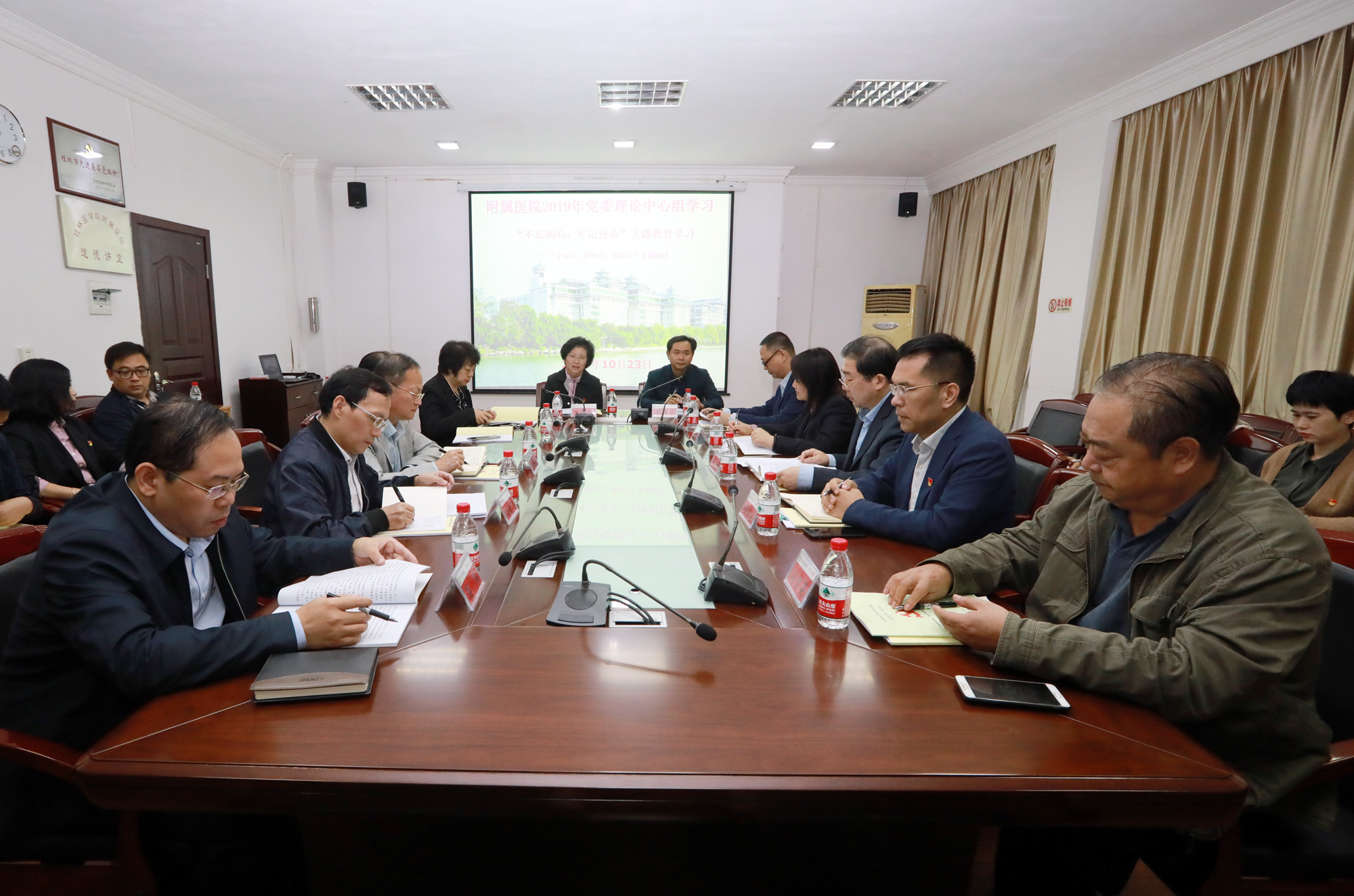 根据医院“不忘初心、牢记使命”主题教育工作安排,10月23日,附属医院(临床医学院)在行政楼会议室举行“不忘初心、牢记使命”主题教育“守初心、持恒心、强信心”专题学习研讨暨党委理论中心组(扩大)2019年第7次专题学习会。附属医院(临床医学院)党政领导班子、党委委员、党口职能部门正副职参加学习研讨。附属医院(临床医学院)党委书记文琼仙主持学习研讨。