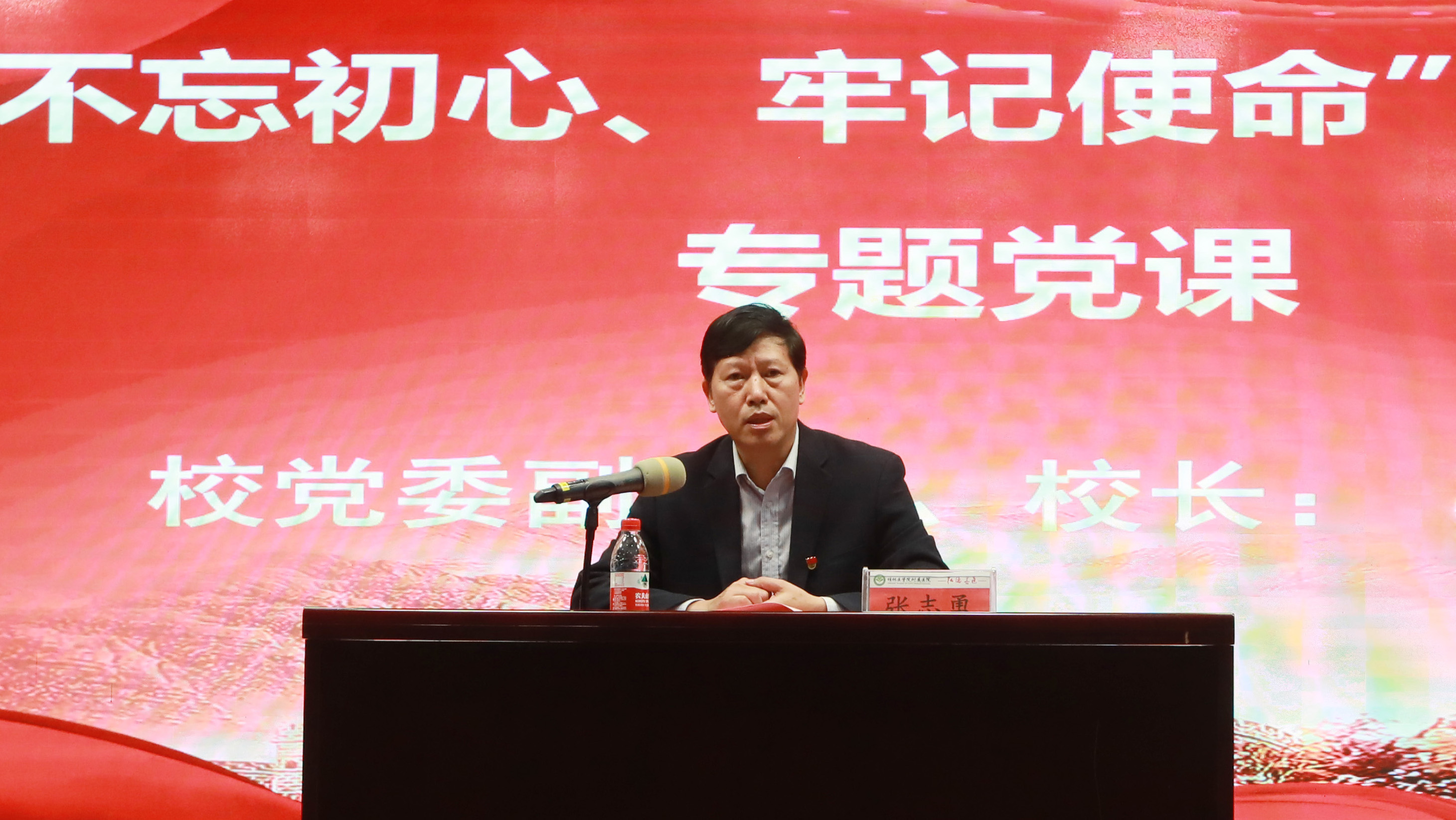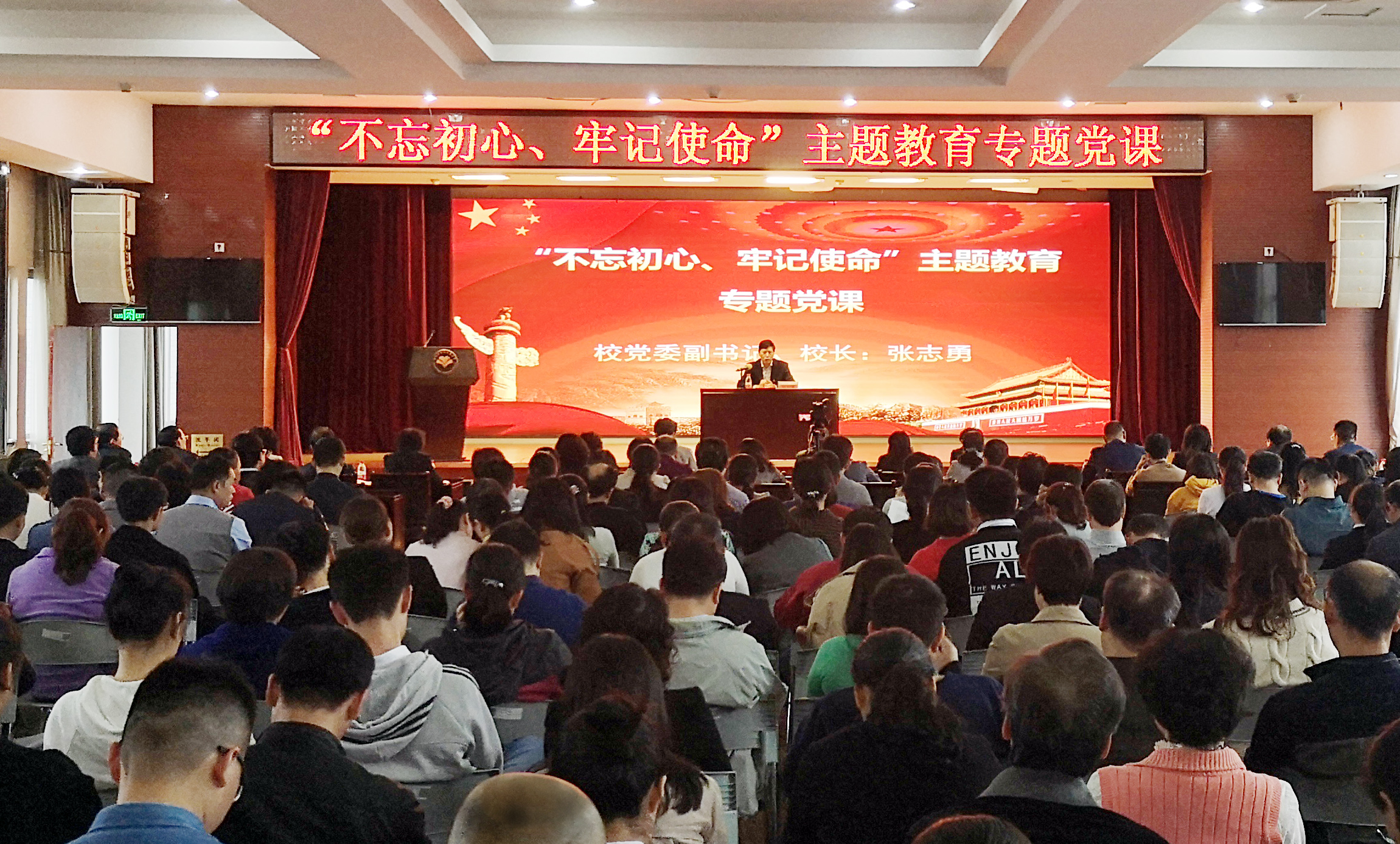 张志勇围绕习近平新时代中国特色社会主义思想和习近平总书记关于“不忘初心、牢记使命”系列重要论述,分别从“共产党人的初心和使命是什么?”“共产党人为什么要不忘初心、牢记使命?”“坚守初心 勇担使命 奋力推进附属医院高质量发展”等方面,深刻阐述了开展主题教育的重大意义,结合“健康中国”战略,强调了坚持党对卫生与健康工作的领导、坚持以人民为中心的发展思想、坚持人民健康优先发展的重要性。