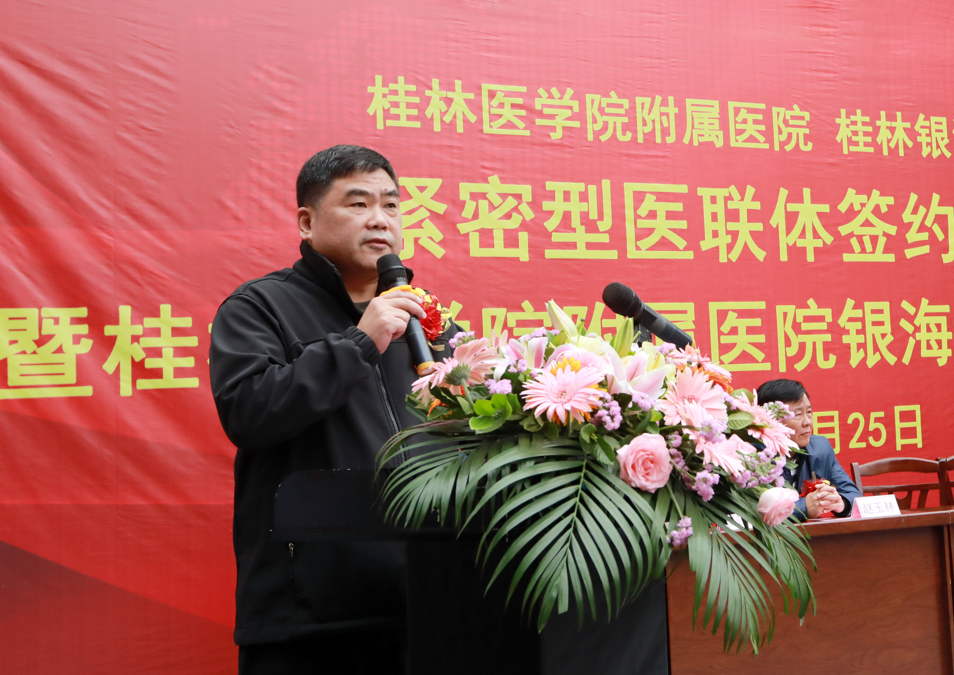 首先,他代表桂林市卫健委对桂林医学院附属医院与桂林银海医院正式组建紧密型医联体,签约并揭牌“桂林医学院附属医院银海分院”表示祝贺!