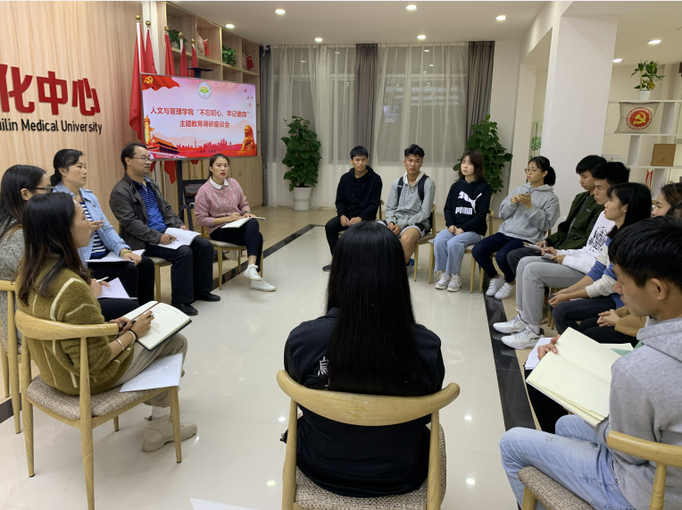 为深入贯彻落实“不忘初心、牢记使命”主题教育精神,倾听学生心声,2019年10月25日上午,人文与管理学院于大学生党建中心开展师生调研座谈会。