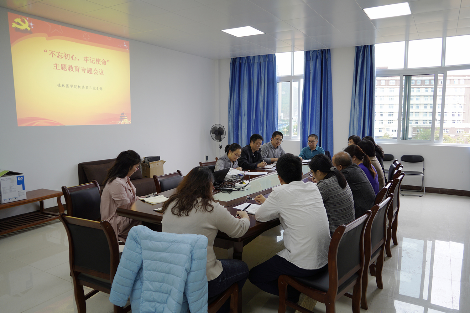 10月23日下午,机关第三党支部全体党员在明德楼401机关党建活动室召开党员大会,扎扎实实推进“不忘初心、牢记使命”主题教育,会议由支部书记刘健翔主持。