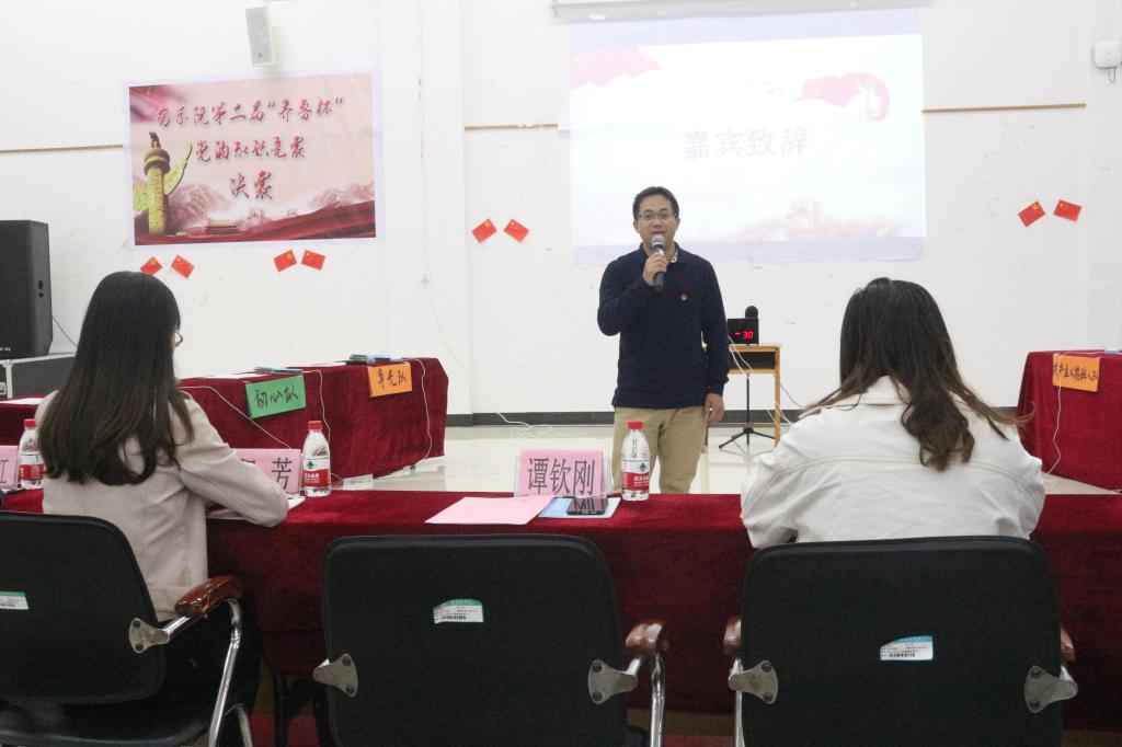 为进一步贯彻落实“不忘初心,牢记使命”主题教育,药学院于2019年10月30日在临桂校区大活二楼多功能报告厅举办了“不忘初心,牢记使命”党的知识竞赛决赛,参与此次活动的有药学院党委副书记谭钦刚、药学院团委书记于静娴、齐鲁制药广西分公司桂柳大区经理丁栩、药学院学工办辅导员及二级学院学生代表。