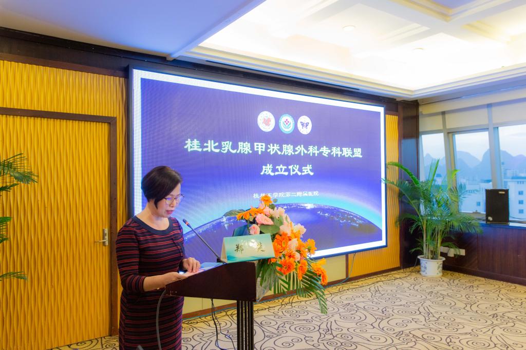 11月1日下午,桂北地区乳腺甲状腺外科专科联盟正式成立。在成立大会上,桂林医学院第二附属医院与荔浦市人民医院、全州县人民医院、永福县人民医院等11家医院正式签订专科联盟合作协议,共同致力于提高桂北地区乳腺甲状腺疾病整体诊治能力。