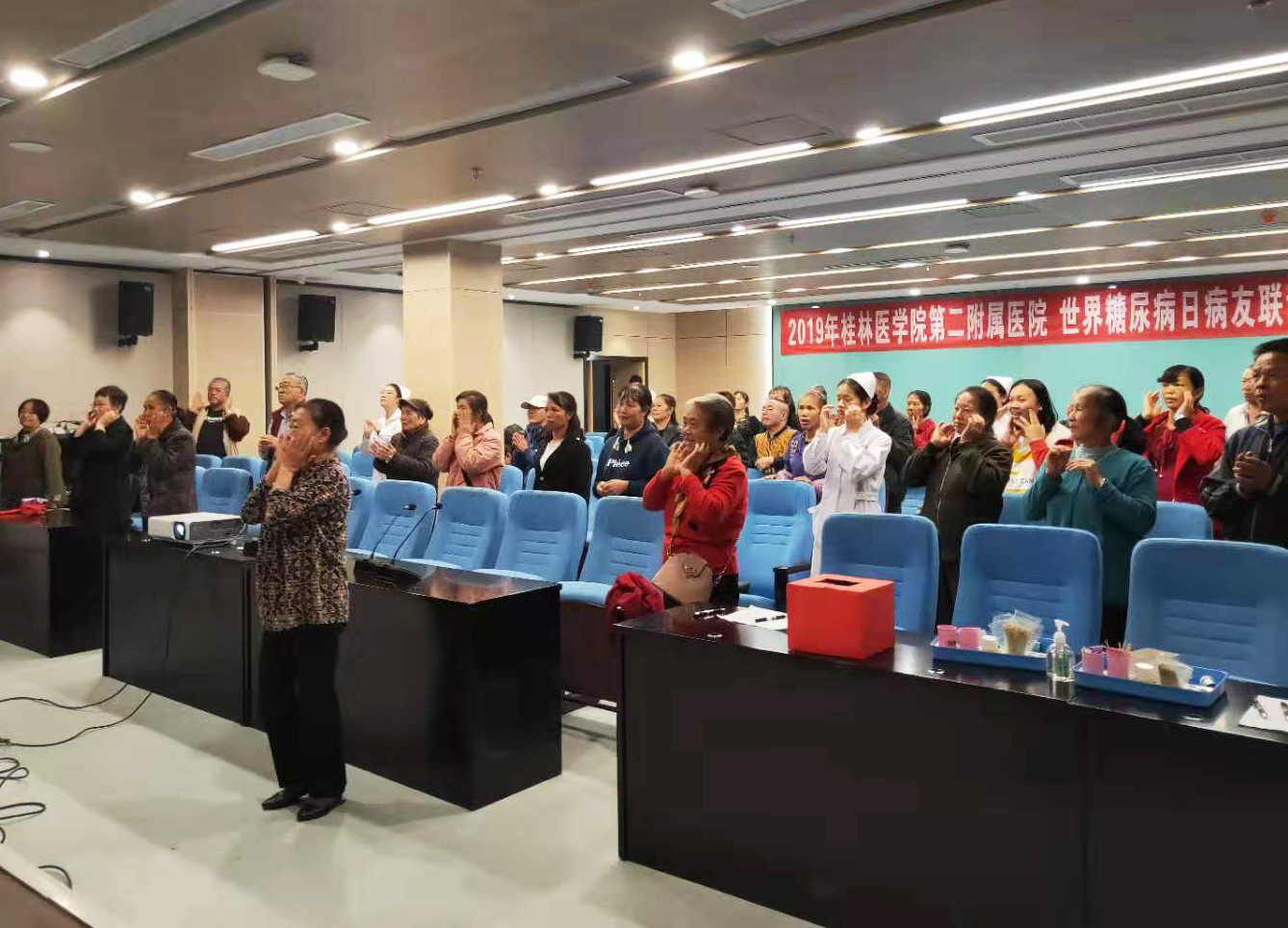 为迎接即将到来的“联合国糖尿病日”,进一步推进糖尿病的防治工作,11月13日上午,桂林医学院第二附属医院内分泌科在PET-CT楼5楼成功地举办了“防控糖尿病,保护你的家庭”主题宣传活动,此次活动吸引了诸多患者及其家属,会场座无虚席,气氛活跃。