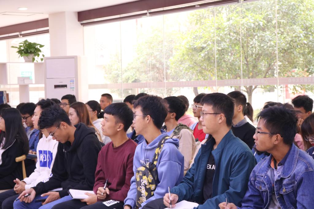 蒙成光通过分析外国文化的渗透阐述了文化自信的紧迫性,通过阐述红军长征这段革命历史,让同学们充分了解我国革命文化。蒙成光认为当代青年人应该对国家、对本国文化拥有足够的自信,作为学生干部更应该坚定中国特色社会主义道路自信,要继承和发展优秀传统文化,夯实我们文化建设的根基,奠定我们文化自信的强大底气。