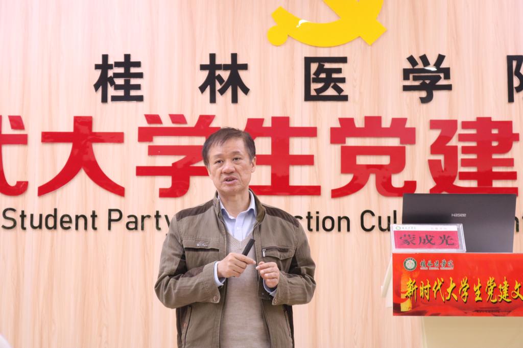 为学习宣传十九大精神,弘扬社会主义核心价值观,学习贯彻习近平新时代中国特色社会主义思想,深入开展“不忘初心、牢记使命”主题教育,提高学工干部党性修养、政治站位,提高大学生思想品德、综合素质能力,增强四个自信,马克思主义学院、学生工作部(处)在临桂校区大学生党建文化中心开展系列马克思主义学院教授博士专场论坛。11月9日上午,马克思主义学院教授博士专场论坛第一场启动。马克思主义学院院长蒙成光教授作了题为“守初心,担使命,坚定文化自信”的讲座。2018级和2019级的本专科生班级各班班长参加本次论坛。