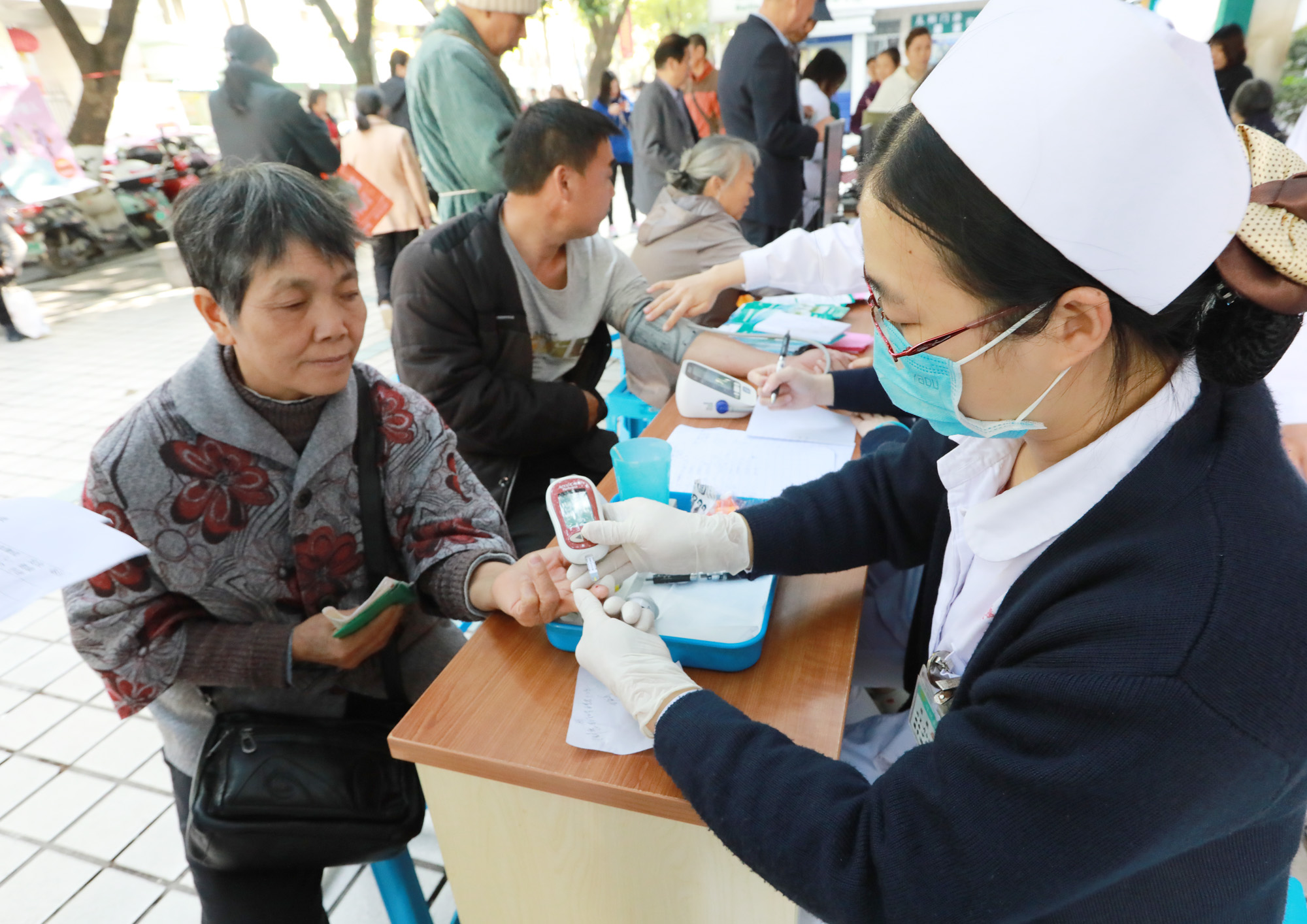 护士在为市民测血糖