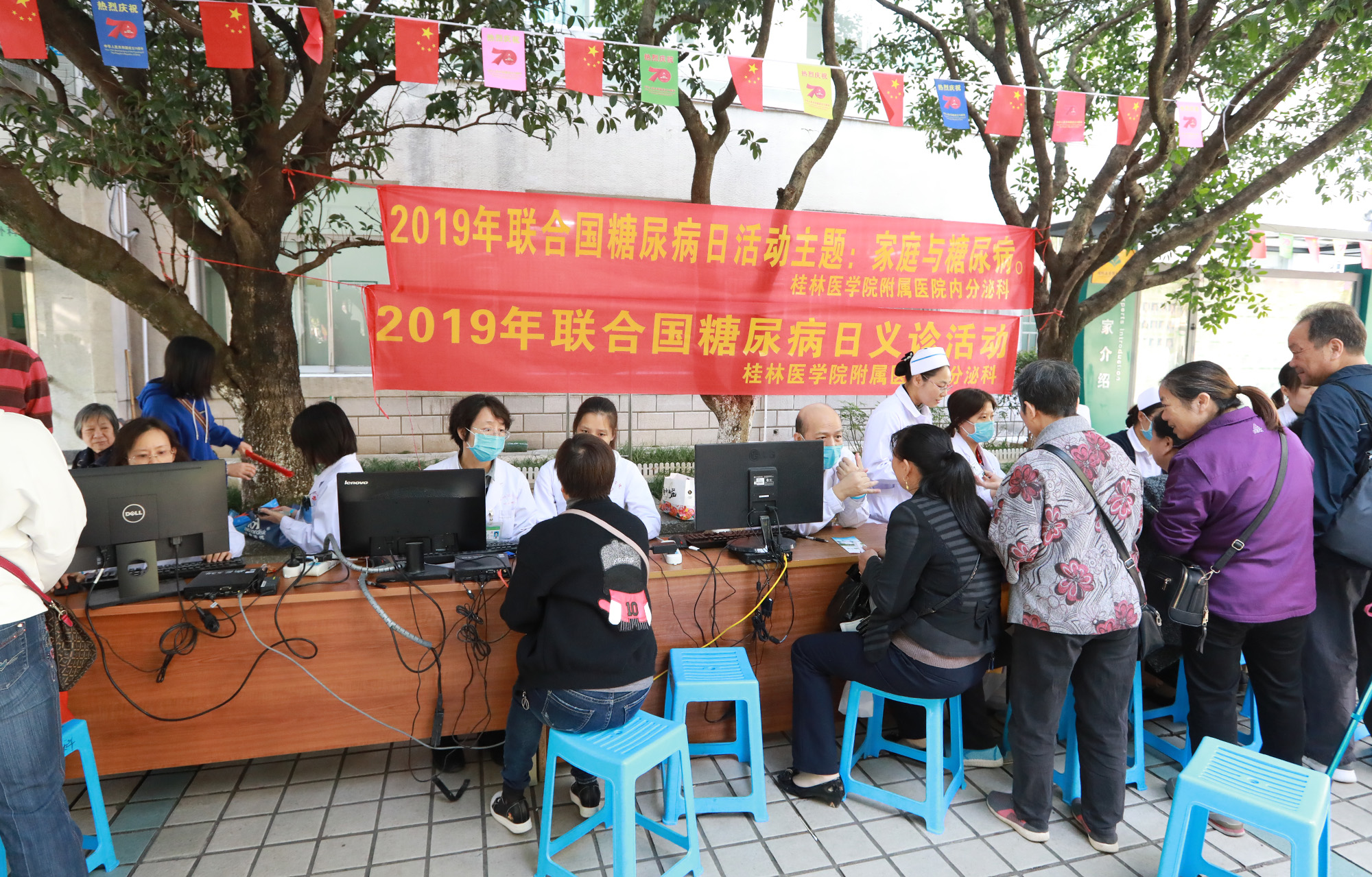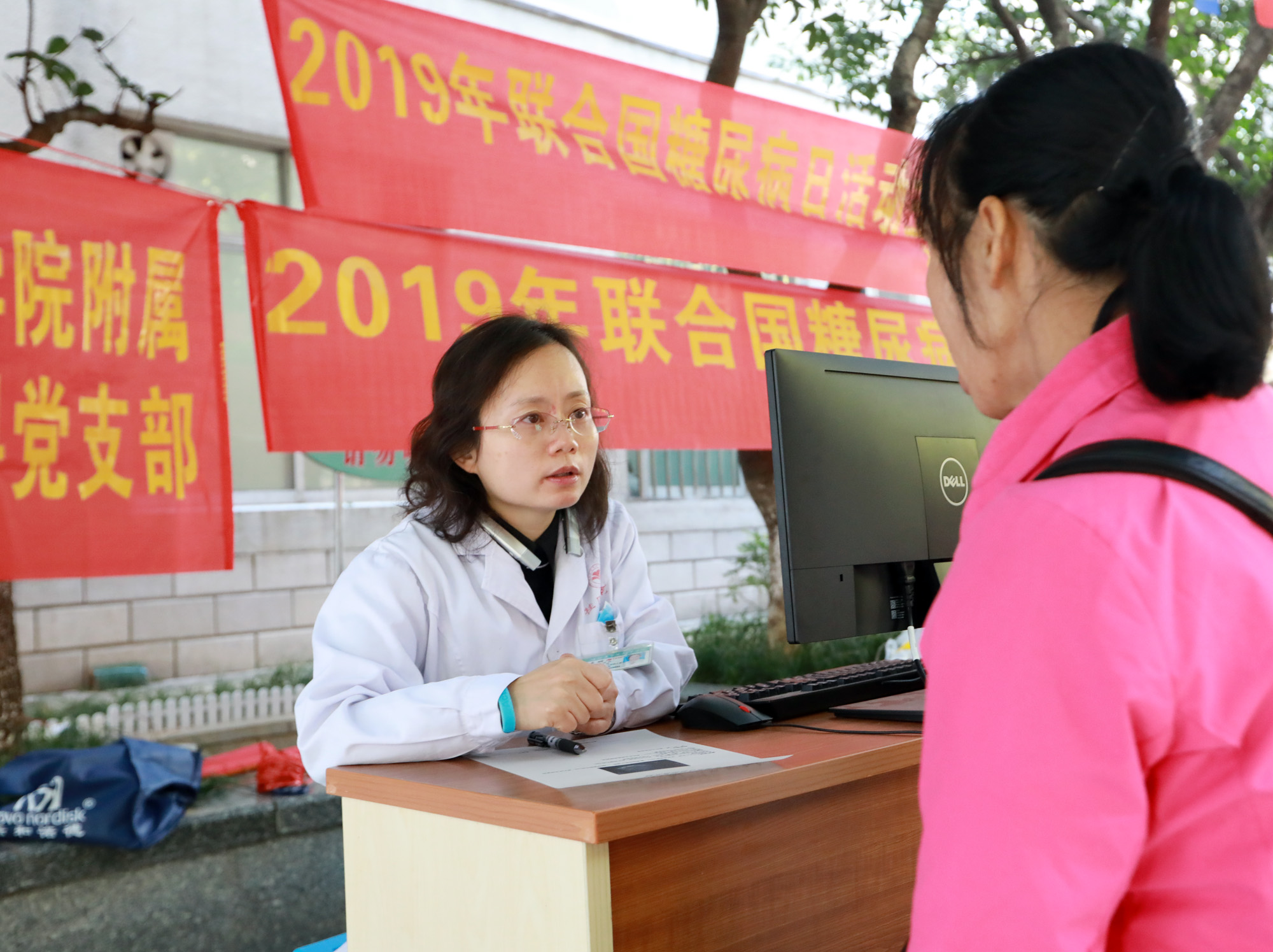 活动现场,内分泌科及内分泌科党支部的十余名医护人员忙着为患者和市民量血压、测血糖、称体重、查体、答疑,并耐心地向他们讲解什么是糖尿病、糖尿病的高危发病人群、糖尿病的危害及防治等知识。据不完全统计,共有350多名患者和市民参加了活动,免费诊疗和咨询近200人次,测血糖、血压和称体重400余人次,发放健康宣教资料700余份。此次活动的开展对提高市民对糖尿病的认识和重视,降低糖尿病发生和危害将起到积极的作用。