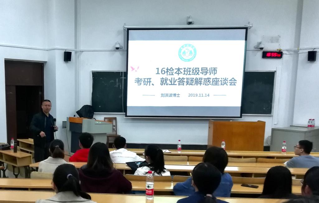 为进一步推动我院“三全育人”工作进程,增强学生考研和就业信心。11月14日下午,医学检验学院在东城校区T2-2举办考研、就业解惑答疑座谈会。16检本班级导师刘洪波博士进行主讲,医学检验学院党总支副书记黄晨,16、17检本班辅导员蒋小英,班级导师刘征博士及16检本班全体同学参加本次活动。