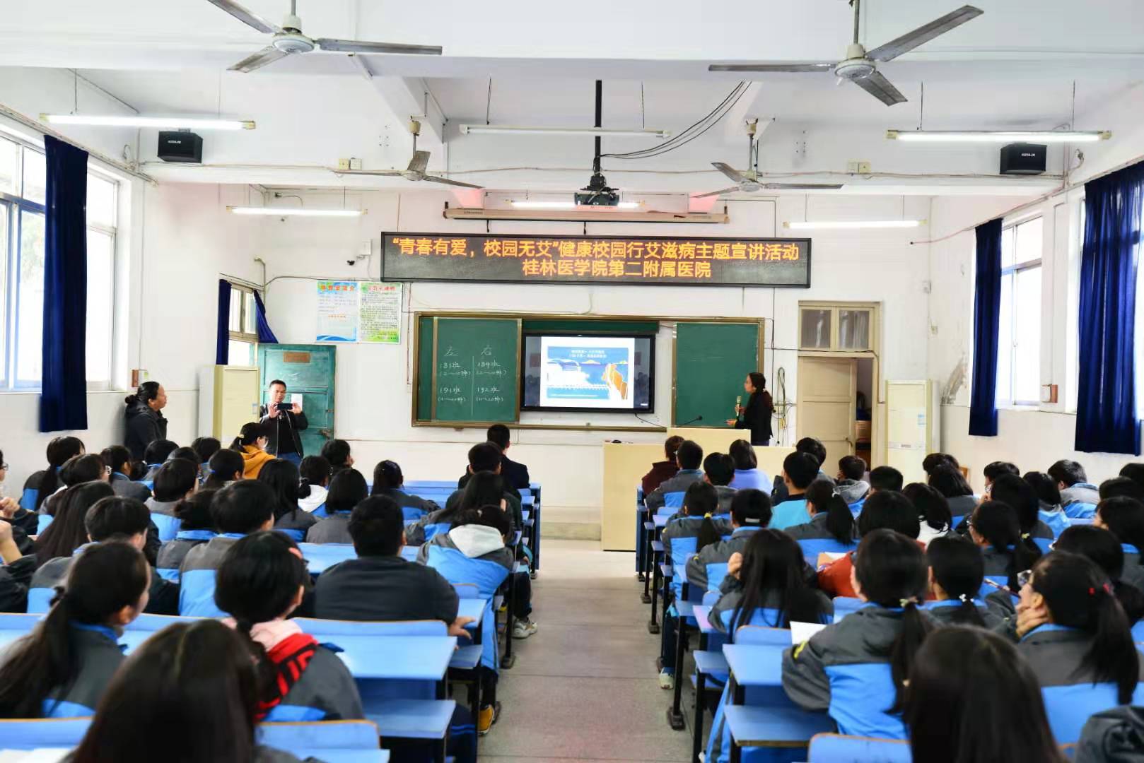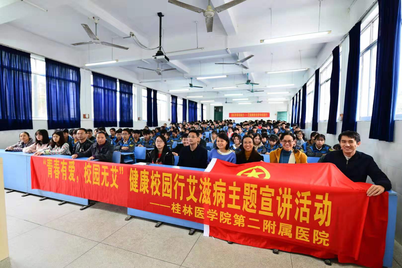 今年9月以来,桂林医学院第二附属医院以“青春有爱 校园无艾”为主题开展健康校园行艾滋病主题宣讲活动,为临桂一带的学术普及艾滋病相关常识,消除广大师生对于艾滋病的误解,正确面对艾滋病和艾滋病患者,提高中学生的防艾意识和防艾技能。