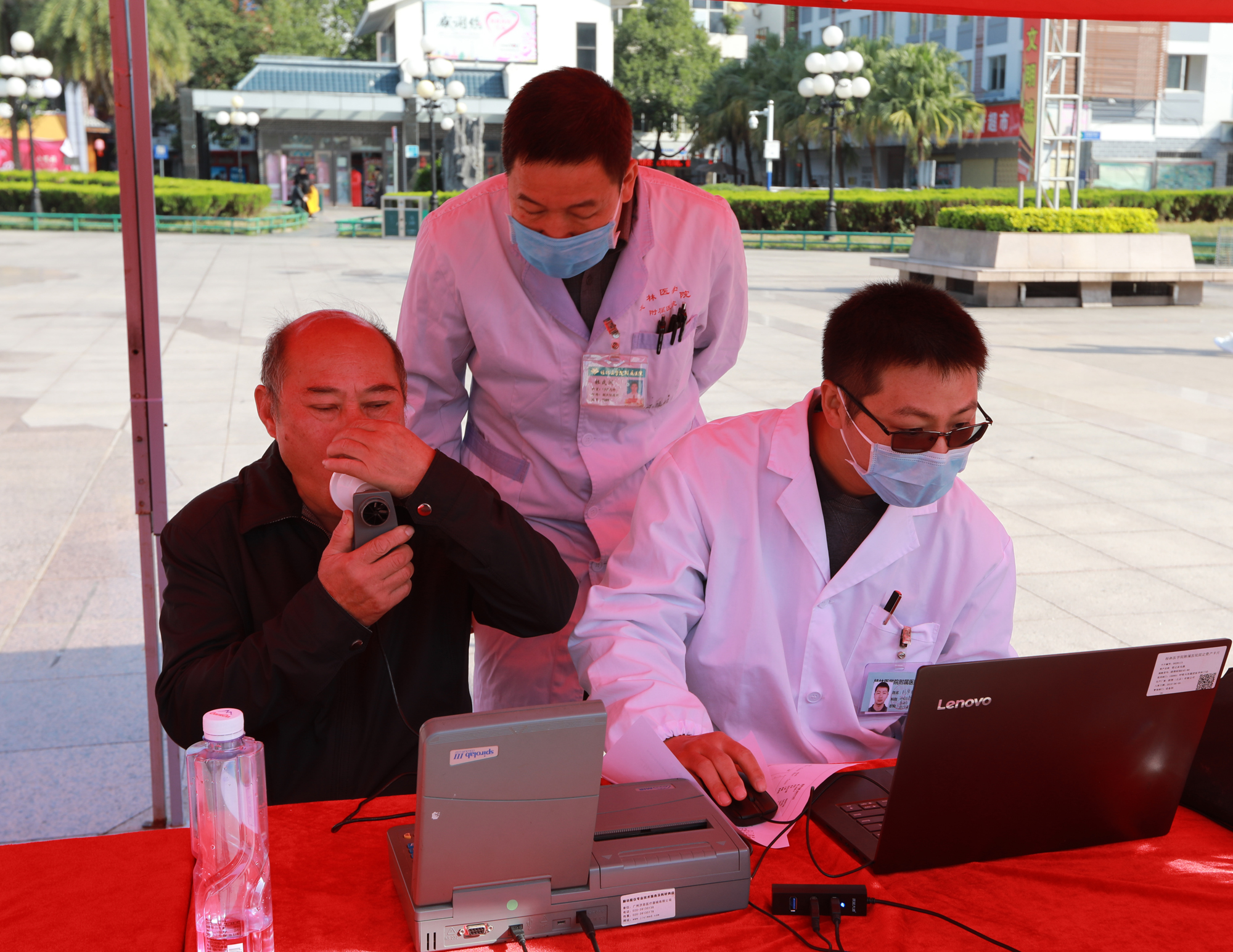 我国慢阻肺人群基数大,民众对慢阻肺的知晓率低,为提高我市市民对慢阻肺的认知,积极主动参与慢阻肺防诊治,桂林医学院附属医院呼吸与危重症医学科牵头举办了2019年世界 “慢阻肺日”大型义诊活动。该活动得到整个桂林市三甲医院呼吸界同仁的积极响应,来自桂林医学院附属医院、桂林医学院护理学院、桂林市人民医院、桂林医学院第二附属医院、桂林市第二人民医院、广西壮族自治区南溪山医院、桂林市中西医结合医院共14名专家及10余名志愿者在市中心广场参加了此次义诊活动。